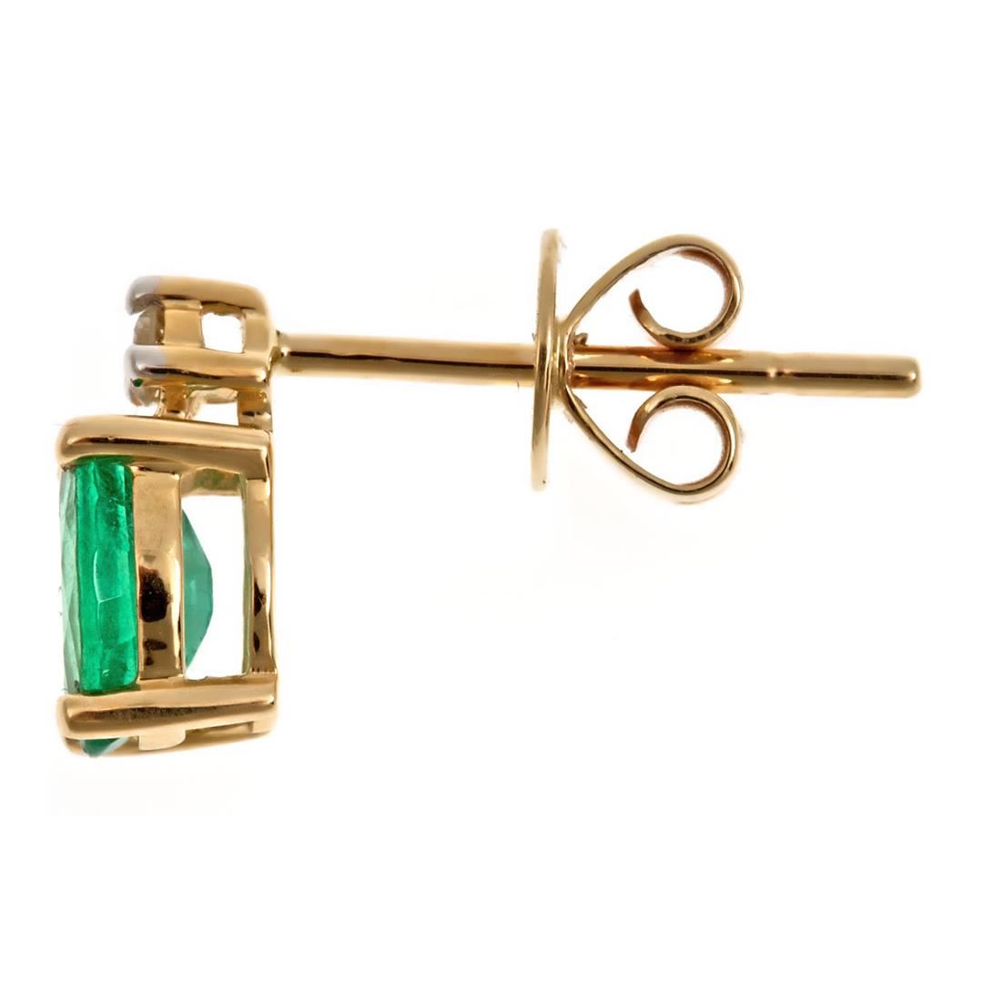 One pair of Earrings featuring: 14KT Yellow and White Gold weighing 1.07 grams containing Emerald with an approximate weight of 0.83ct, Diamond with an approximate weight of 0.08ct, and with an approximate weight of ct.