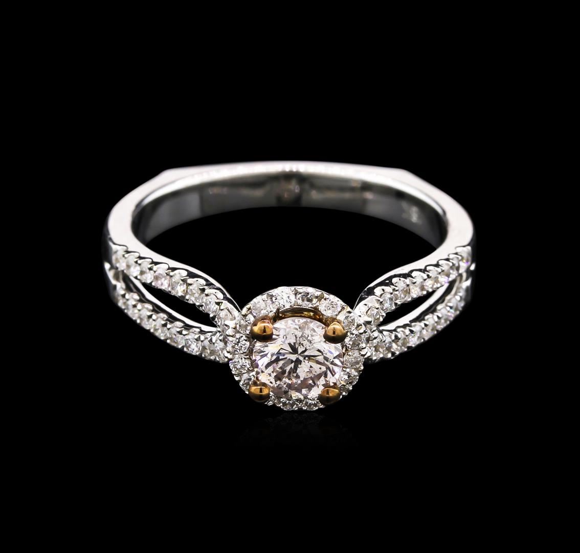One electronically tested 18KT white gold lady's cast wedding ring with a split European shank with a bright polish finish. The featured lady's ring has a shank measuring 2.58 millimeters wide. Identified with markings of "18K". Condition is new, good workmanship. Containing: One prong set round brilliant cut diamond, measuring 4.63 - 4.62 x 2.82mm (depth est.) approximate weight of 0.37ct. Graded in the setting. Clarity: SI-2 Cut Good Sixty-Eight split prong set round brilliant cut diamonds, measuring 1.30 - 1.05 x 0.77mm (depth est.) approximate total weight of 68 Stones = 0.46ct. Graded in the setting. Clarity: SI-2 to I-1. Color: G - Good. Total Weight of Diamonds 0.83ct. Total Weight of Ring 4.40gm. GAS Appraised at $4,400.00.