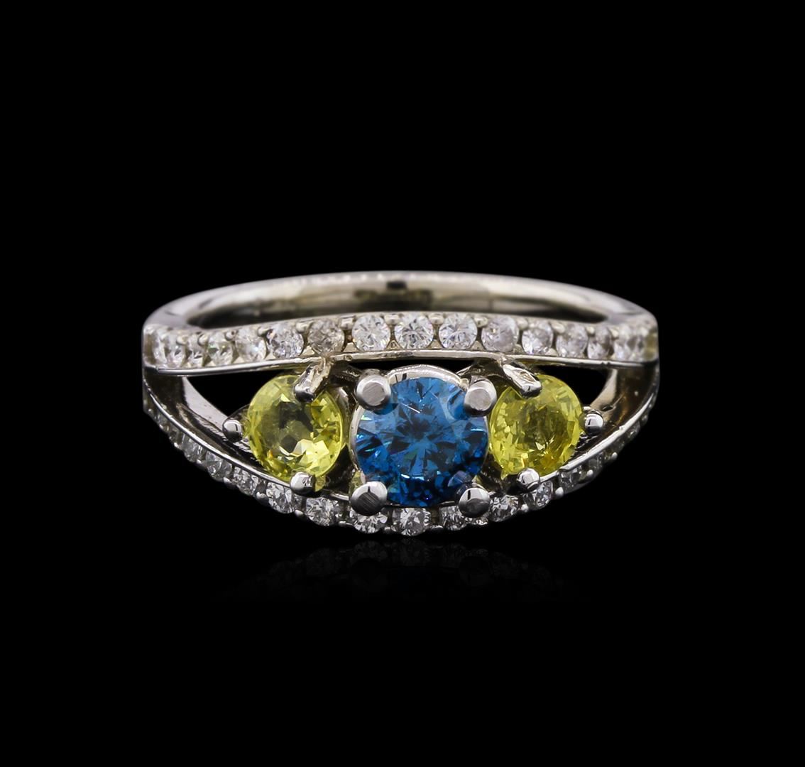 One ring featuring: 14KT white gold weighing 5.38 grams containing one black diamond with a total weight of 0.54ct and 2 sapphires with a total weight of 0.75ct and side diamonds with a total weight of 0.48ct.