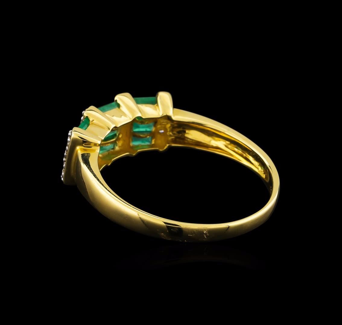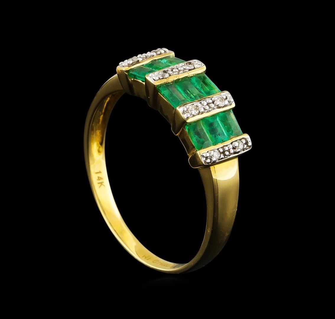 One ring featuring: 14KT yellow gold weighing 2.41 grams containing nine emeralds with a total weight of 0.84ct and eight round diamonds with a total weight of 0.06ct.