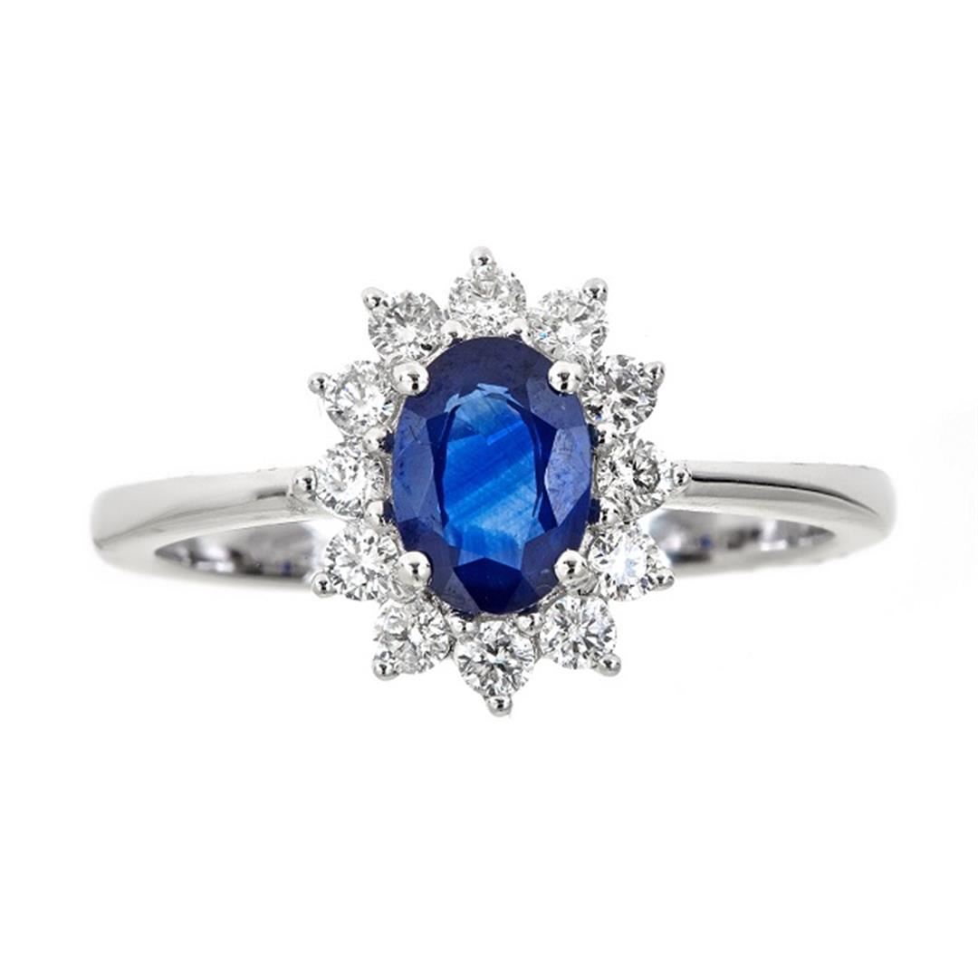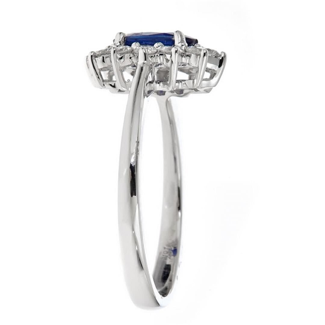One Ring : 18KT white gold weighing 3.11gm containing one blue sapphire center stone with a total weight of 0.84ct and side diamonds weighing 0.40ctw.