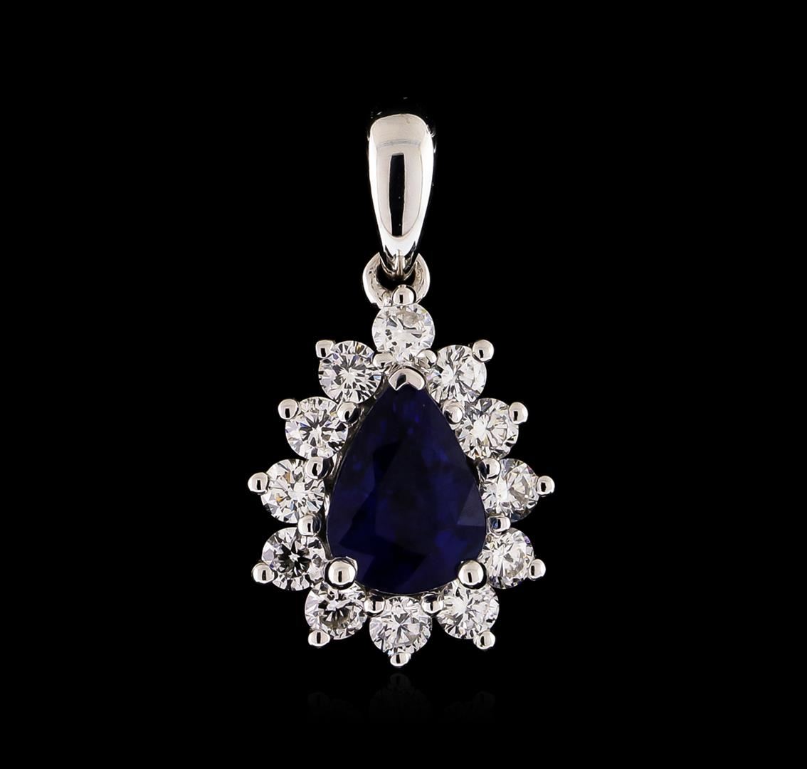 One pendant featuring: 18KT white gold weighing 1.50 grams containing one blue sapphire with an approximate total weight of 0.84ct and diamonds with an approximate total weight of 0.37.