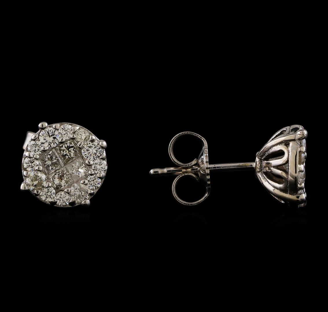 One pair of stud earrings featuring: 14KT white gold weighing 2.35 grams containing diamonds weighing 0.85ctw.