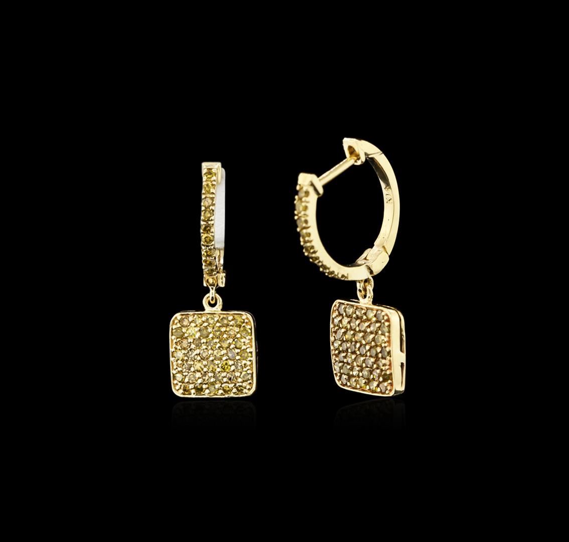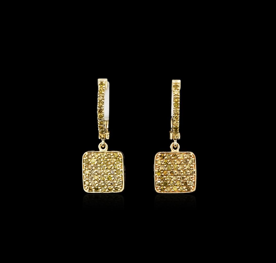One pair of earrings featuring: 14KT yellow gold weighing 3.79 grams containing 94 yellow diamonds with a total weight of 0.85ct.