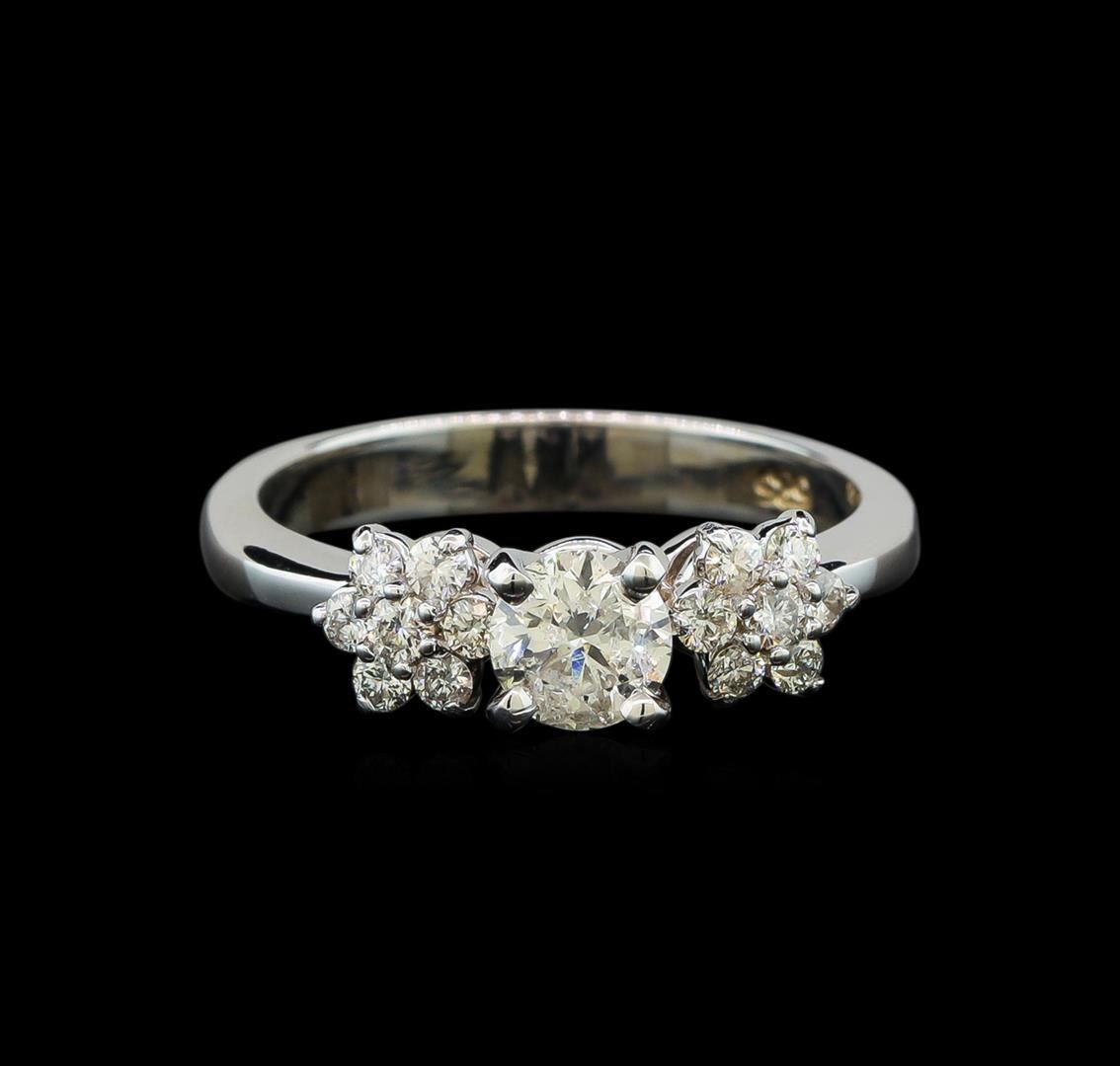 One electronically tested 14KT white gold lady's combination cast & assembled wedding ring with a bright polish finish. The featured lady's ring has a shank measuring 3.05 millimeters wide. Identified with markings of '585'. Condition is new, good workmanship. Containing: One prong set round brilliant cut diamond, measuring 5.07 - 5.04 x 3.14mm (depth est.), 3.00.%. GTCF approximate weight of 0.55ct. Graded in the setting. Clarity I-1. Color: H Cut Good Two prong set round brilliant cut diamonds, measuring 2.10 - 2.00 x 1.23mm (depth est.) approximate total weight of 2 Stones = 0.06ct. Graded in the setting. Clarity SI-2. Color: I Cut Good Twelve prong set round brilliant cut diamonds, measuring 1.80 - 1.70 x 1.09mm (depth est.) approximate total weight of 12 Stones = 0.25ct. Graded in the setting. Clarity SI-1 to SI-2. Color: I Cut Good. Total Weight of Diamonds 0.86ct.. Total Weight of Ring 4.00gm.