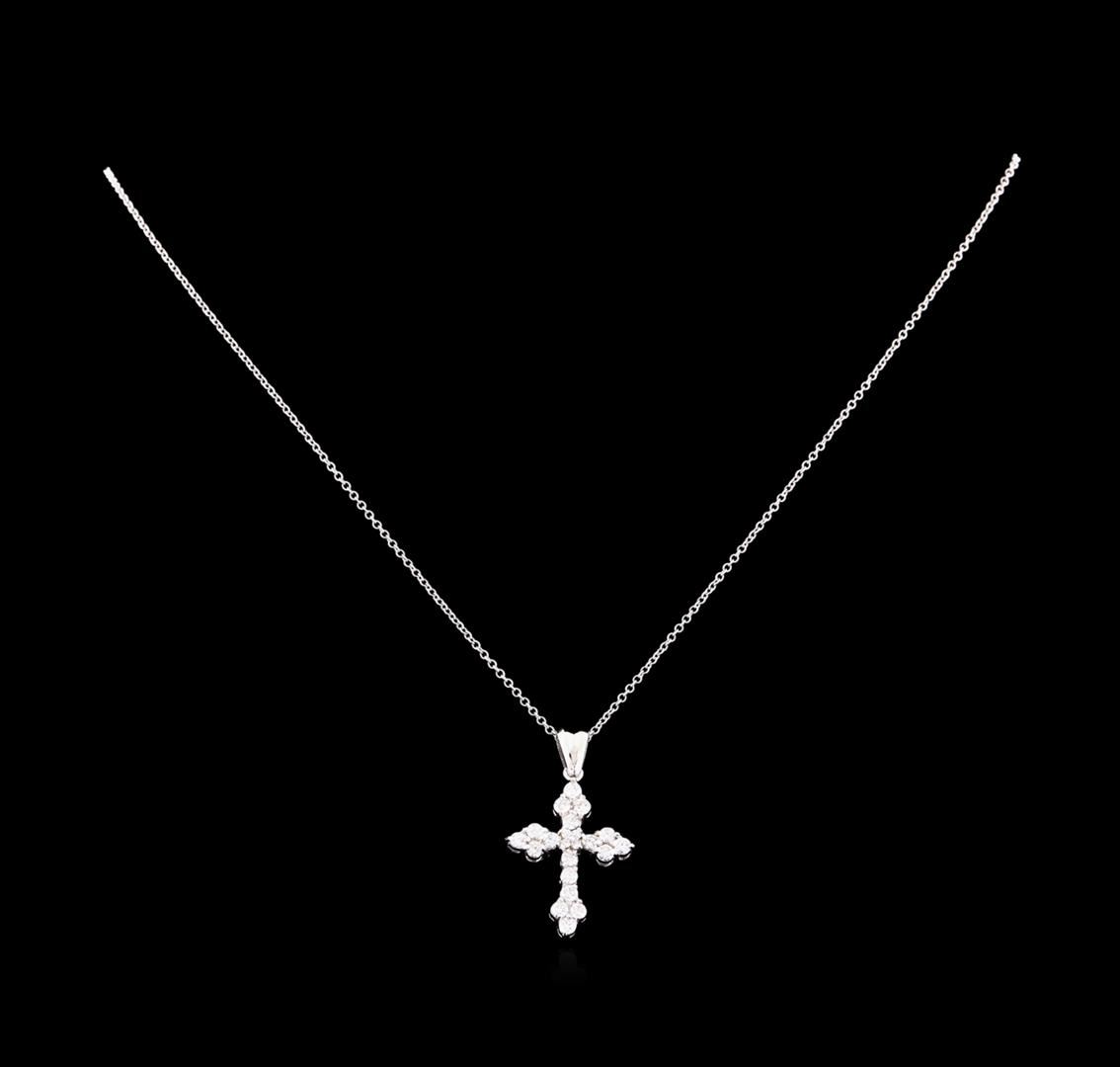 One cross pendant with chain featuring: 14KT white gold weighing 3.28 grams containing diamonds with a total weight of 0.88ct.