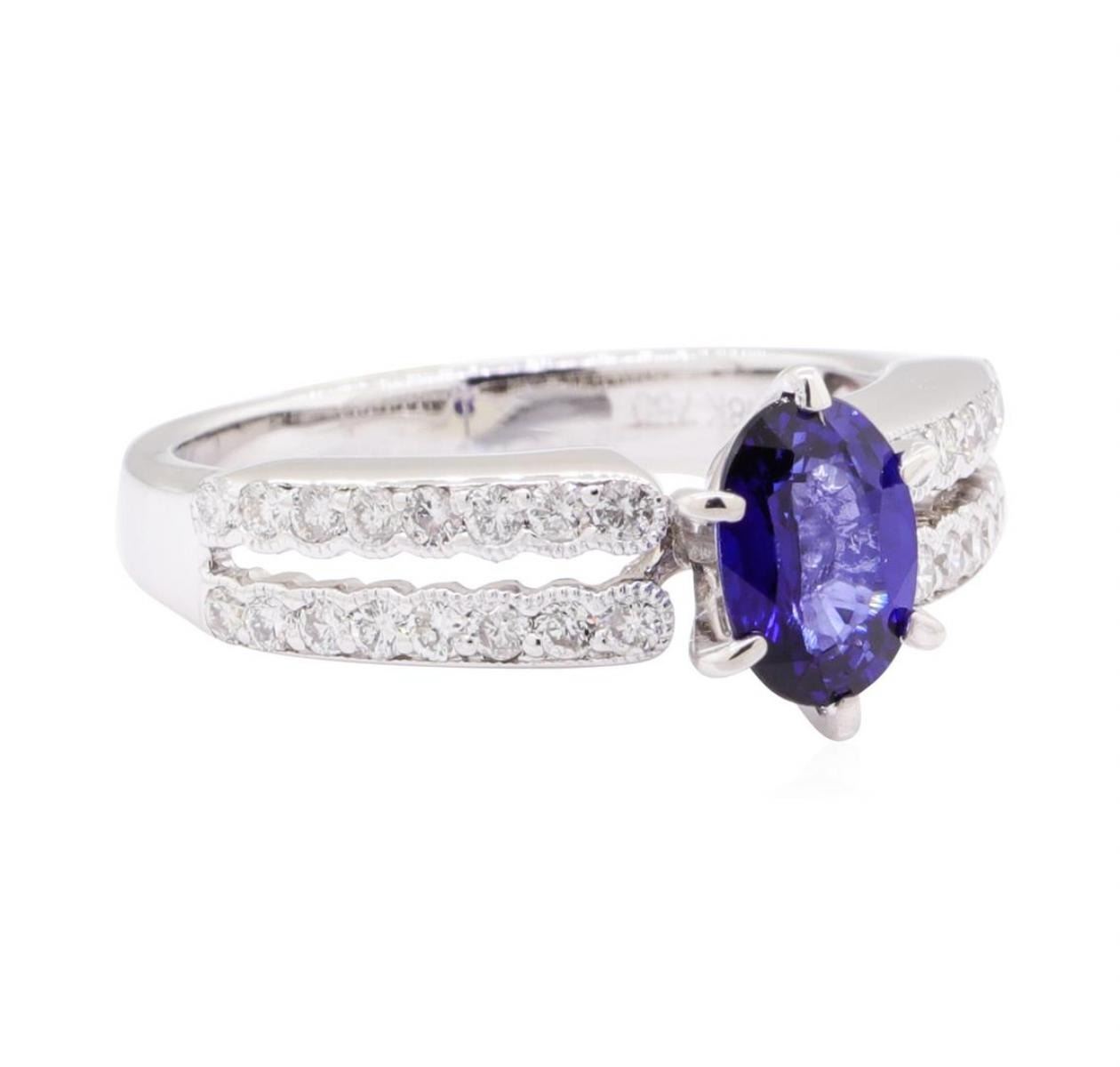 One lady's ring featuring: 18KT white gold weighing 4.2 grams containing one sapphire weighing 0.88ct and diamonds weighing 0.70ctw.