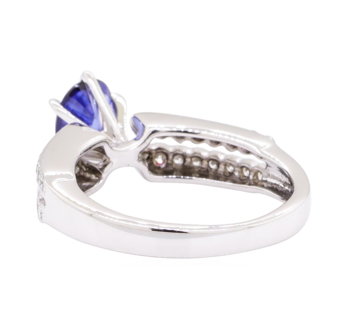 One lady's ring featuring: 18KT white gold weighing 4.2 grams containing one sapphire weighing 0.88ct and diamonds weighing 0.70ctw.