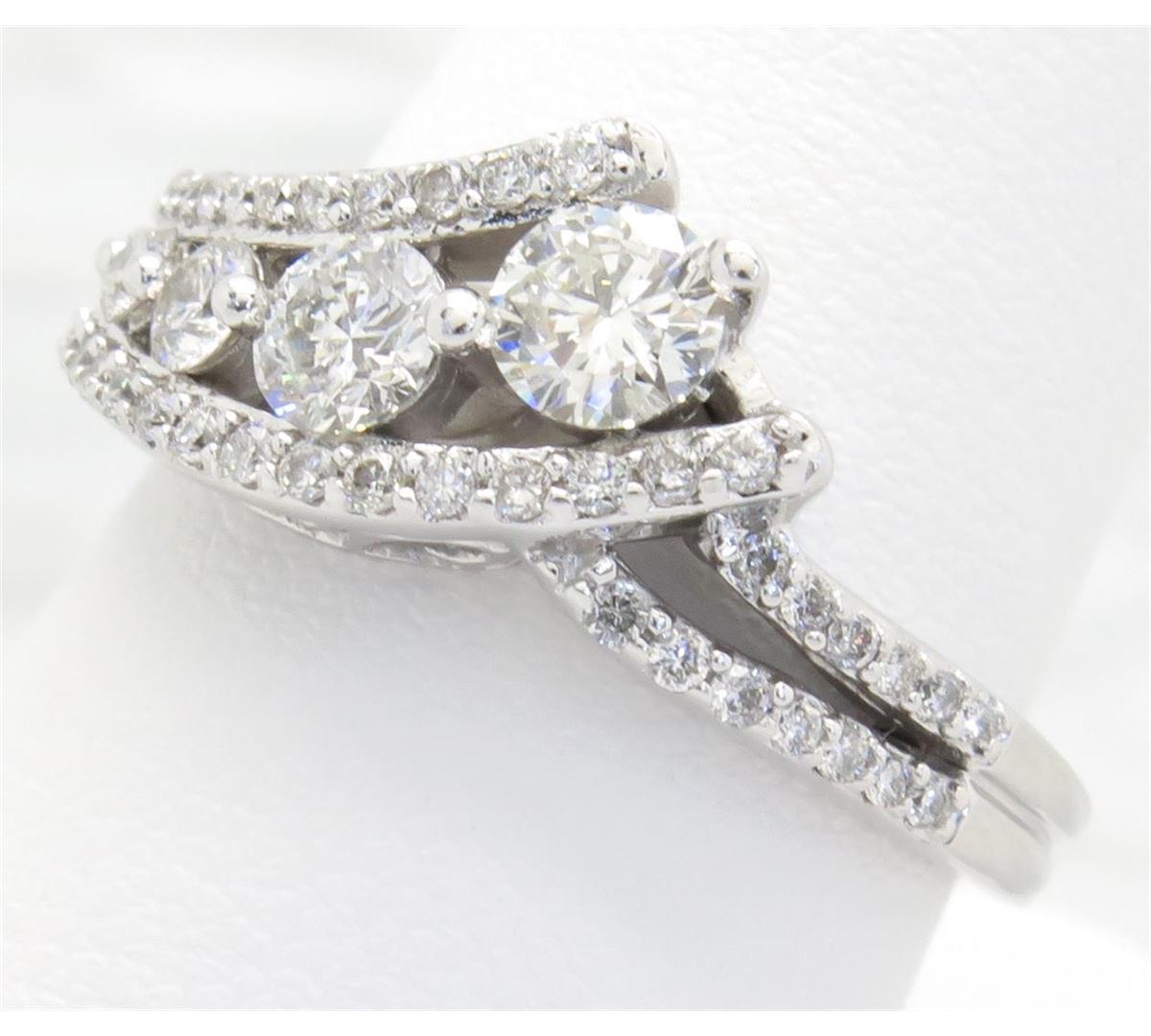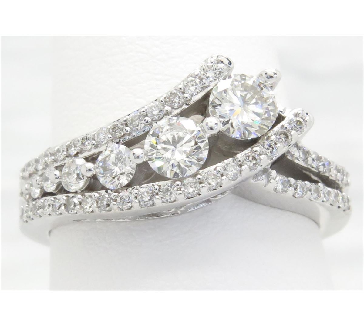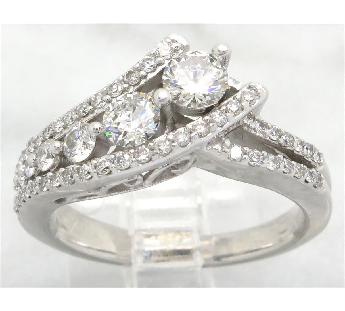 One tested 14K white gold diamond ring. Containing: 52 Round Brilliant Cut Diamonds. Clarity: I-SI, Color: G-H. Approximate total diamond weight: .89CTW. Diamonds are graded in the mounting, unless otherwise stated. Weight of ring: 6.0 grams. Size: 7.0.