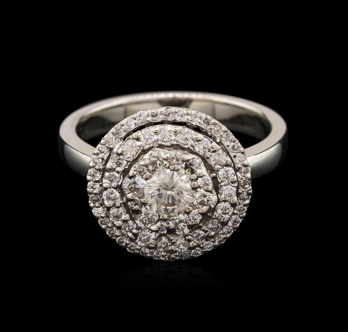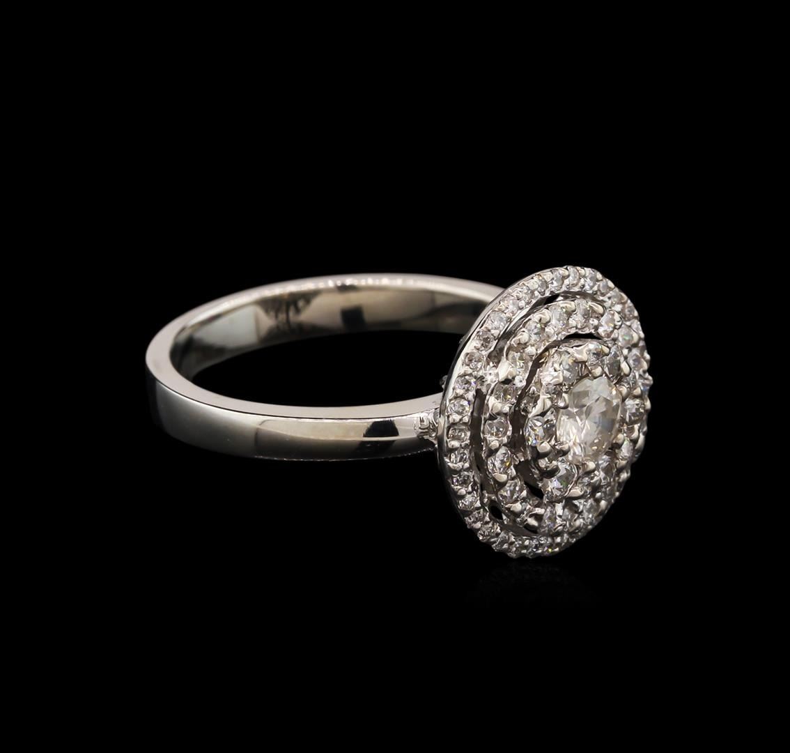 One ring featuring: 14KT white gold weighing 4.75 grams containing one center diamond with a total weight of 0.28ct and side diamonds with a total weight of 0.61ct.