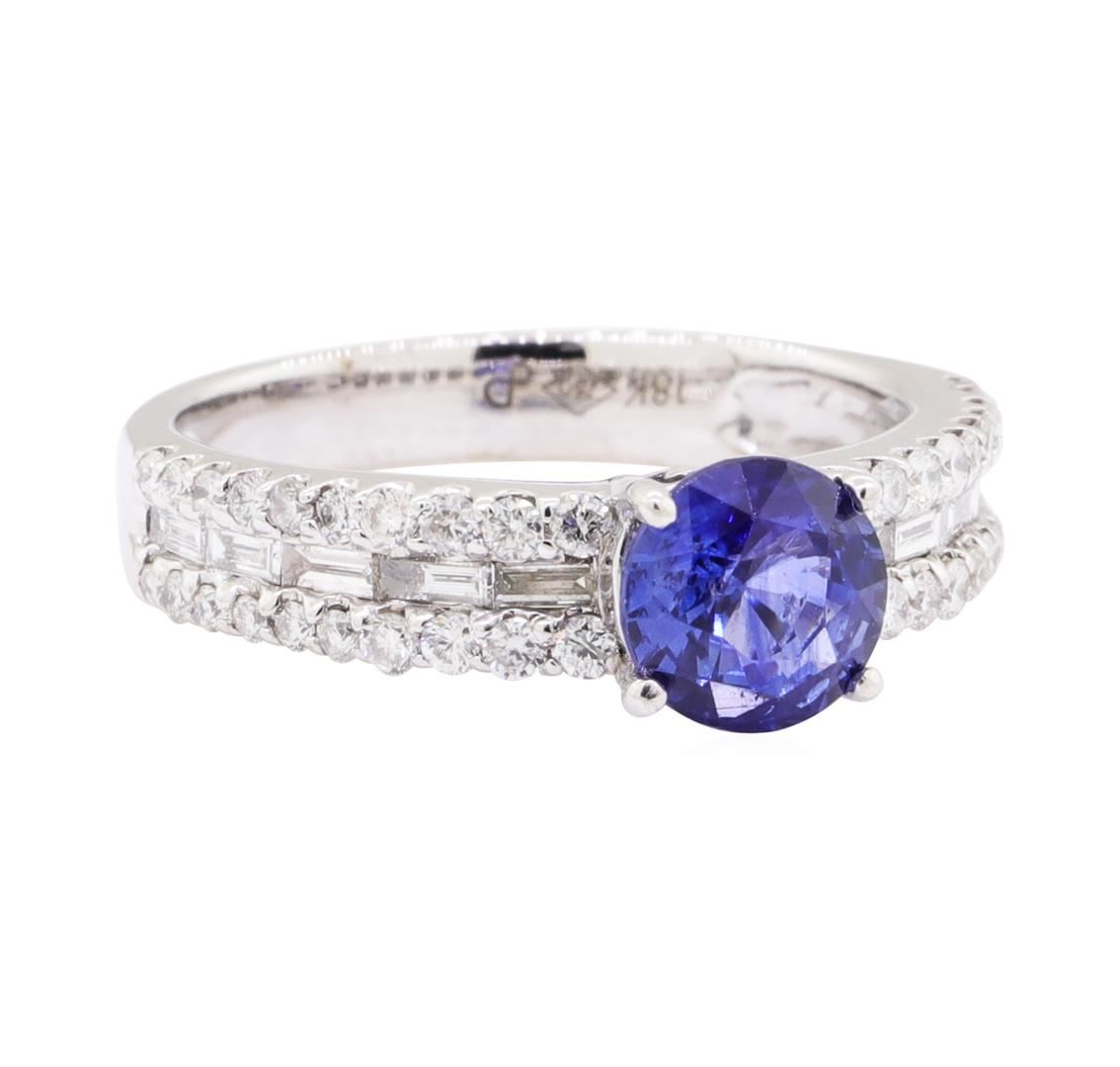 One lady's ring featuring: 18KT white gold weighing 3.4 grams containing one center sapphire weighing 0.89ct and diamonds weighing 0.60ctw.