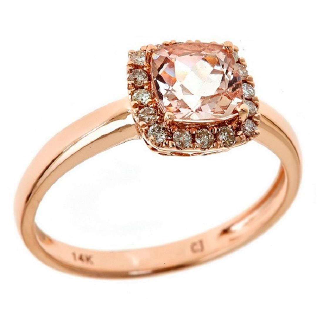 One Ring featuring: 14KT Rose Gold weighing 2.68 grams containing Morganite with an approximate weight of 0.9ct, Diamond with an approximate weight of 0.15ct, and with an approximate weight of ct.