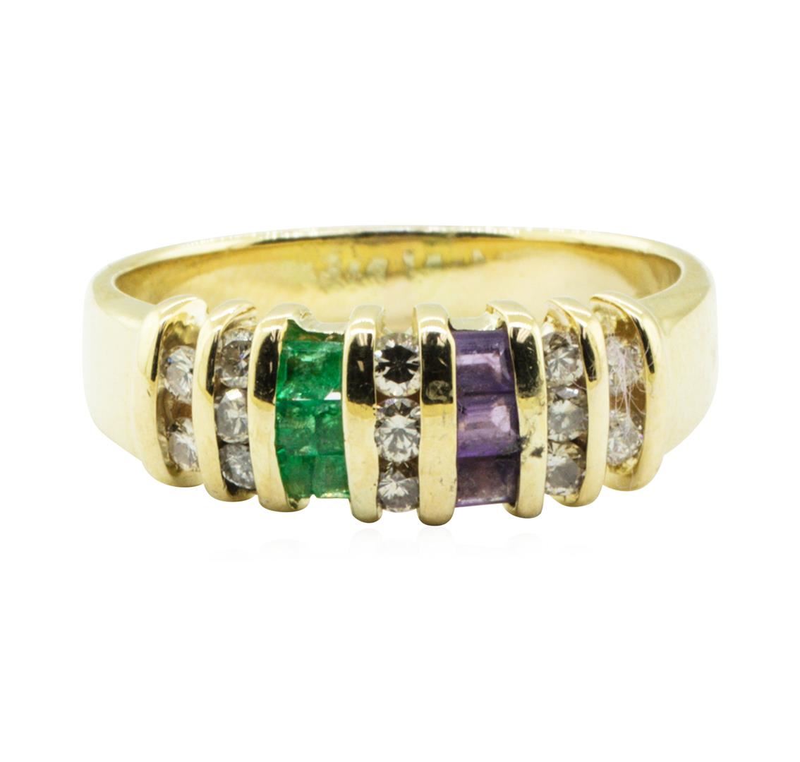 One ring featuring: 14KT yellow gold weighing 4.9 grams containing diamonds weighing 0.50 ctw and amethyst and emerald weighing 0.40 ctw.