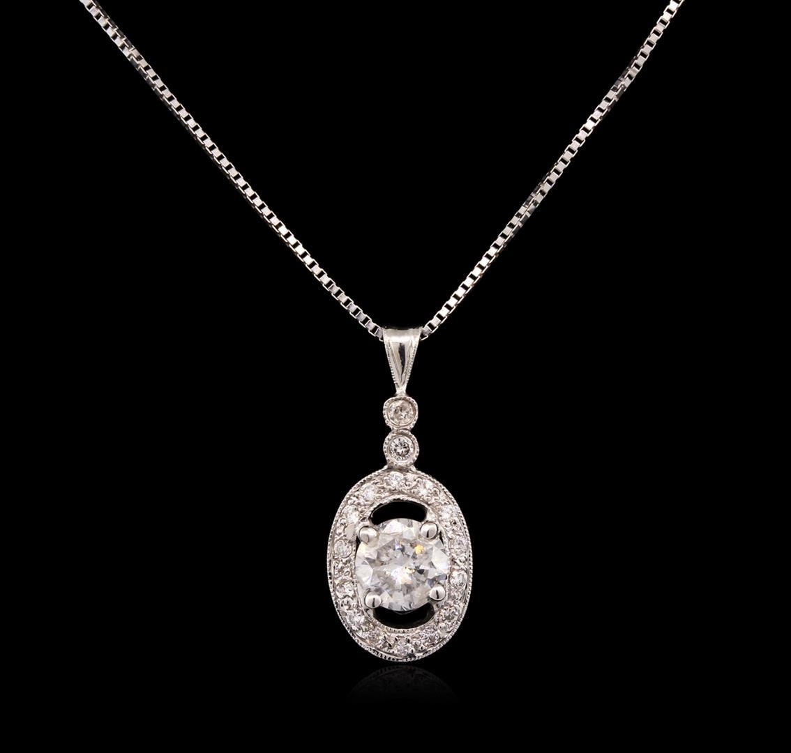 One pendant with chain featuring: 14KT white gold weighing 4.00 grams containing diamonds with a total weight of 0.90ct.
