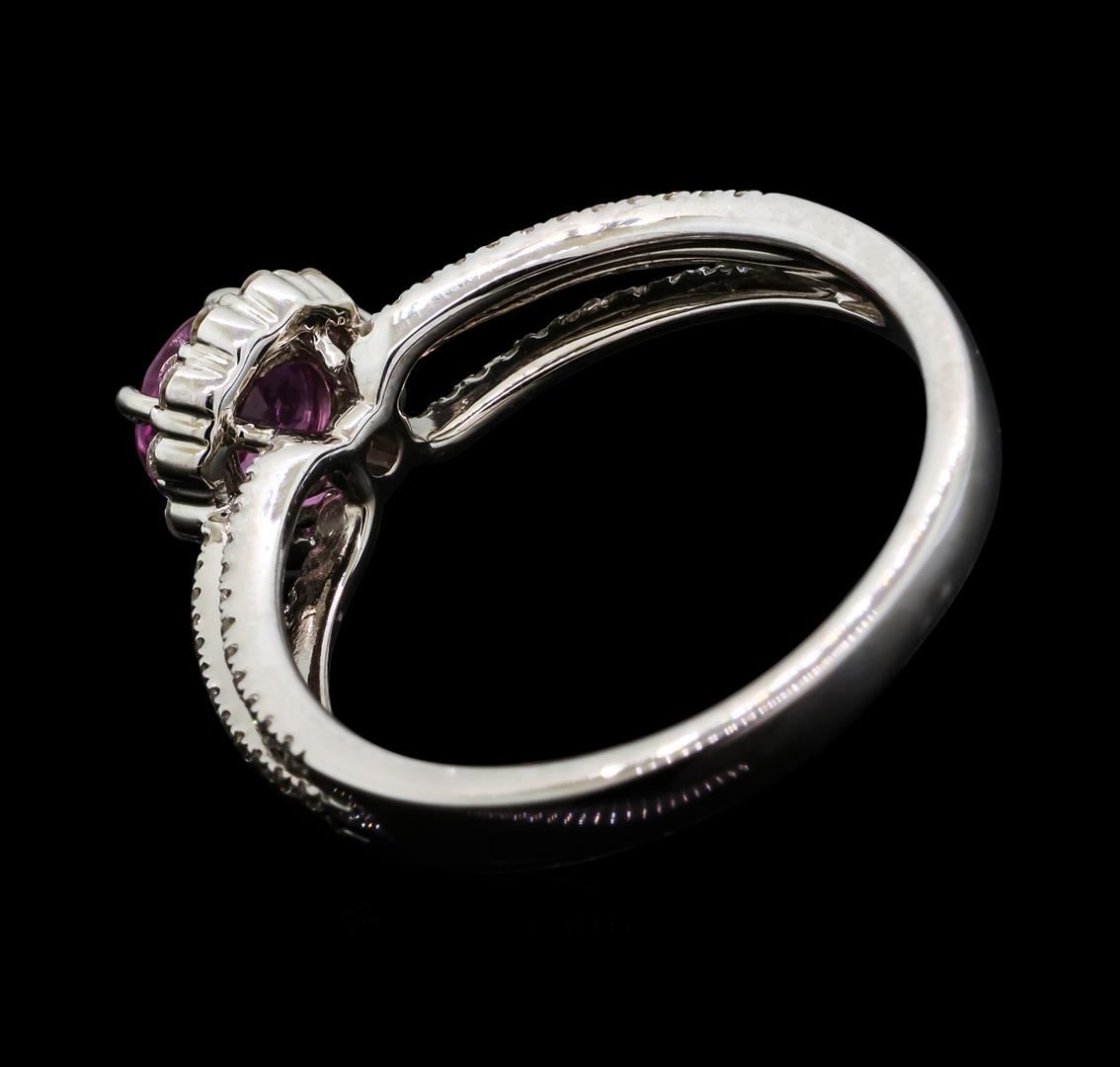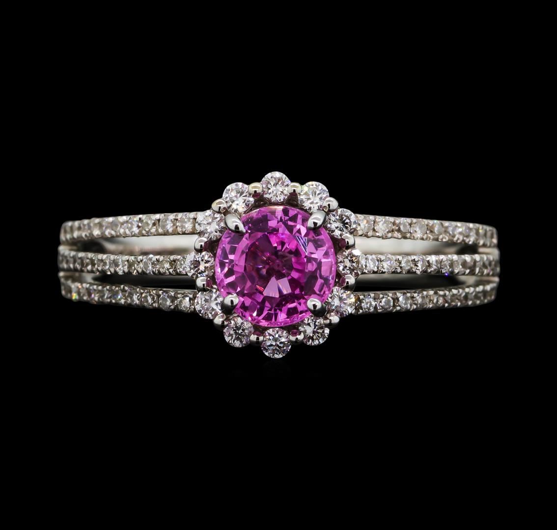 One ring featuring: 14KT white gold weighing 2.2 grams containing one pink sapphire weighing 0.90ct and diamonds weighing 0.38ctw.