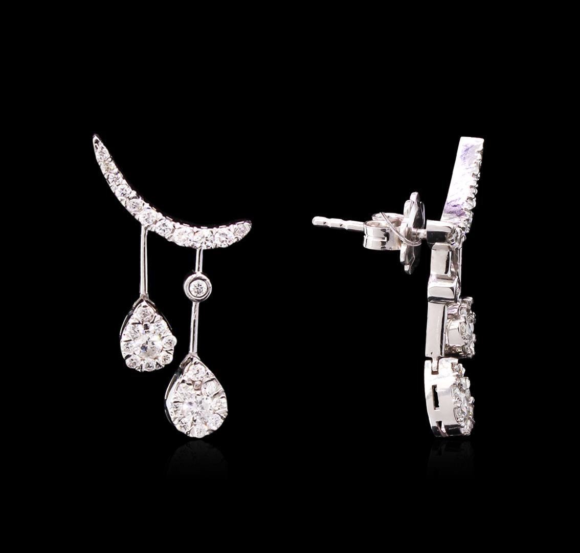 One pair of earrings featuring: 14KT white gold weighing 4.57 grams containing 2 center round diamonds with a total weight of 0.18ct and 56 side diamonds with a total weight of 0.73ct.