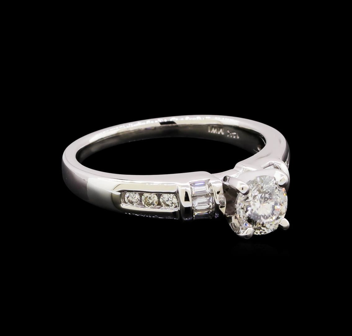 One electronically tested 14KT white gold lady's combination cast & assembled straight line wedding ring with a bright polish finish. The featured lady's ring has a shank measuring 1.94 millimeters in width. Identified with markings of "14K". Condition is new, good workmanship. Containing: One prong set round brilliant cut diamond, measuring 5.50 - 5.49 x 3.90mm (depth est.) approximate weight of 0.71ct. Graded in the setting. Clarity: I-1. Color: Good Six channel set round brilliant cut diamonds, measuring 1.70 - 1.60 x 0.99mm (depth est.) approximate total weight of 6 Stones = 0.10ct. Graded in the setting. Clarity: SI-1 to SI-2. Color: H - I. Cut Good Six channel set baguette cut diamonds, measuring from 1.70 x 1.20 x 1.02mm (depth est.) to 1.80 x 1.30 x 1.11mm (depth est.) approximate total weight of 6 Stones = 0.10ct. Graded in the setting. Clarity: VS-1 to VS-2. Color: G - Very Good. Total Weight of Diamonds 0.91ct. Total Weight of Wedding Ring 4.80gm. GAS Appraised at $5,305.00.