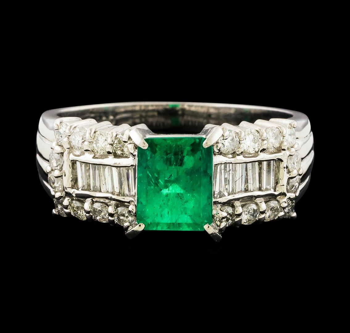 One ring featuring: Platinum containing Emerald with a total weight of 0.91ct and Diamonds with a total weight of 0.60ct. Total Weight of Ring: 6.5 grams.