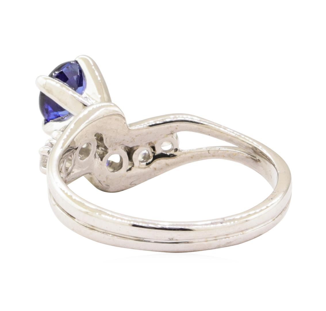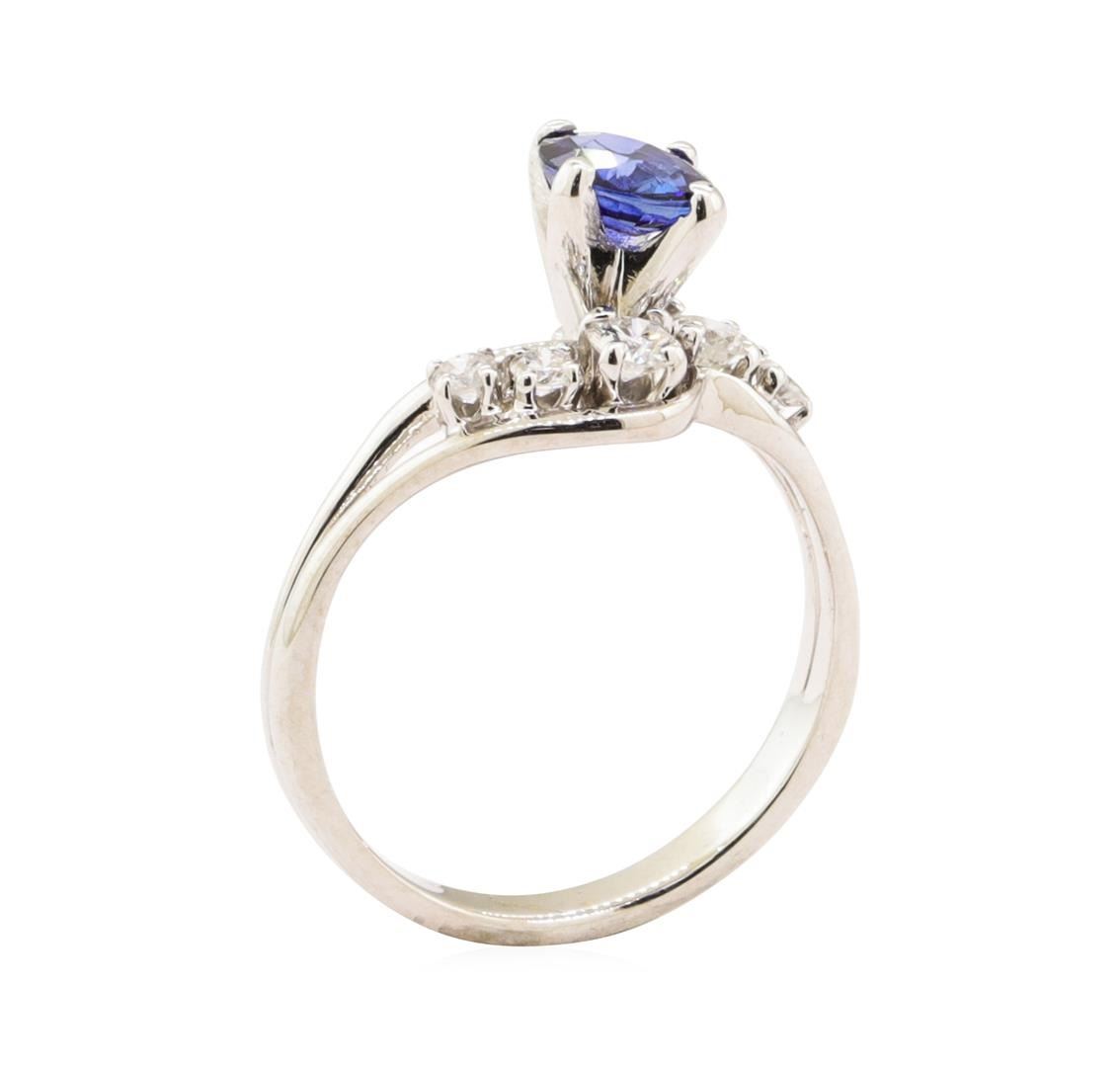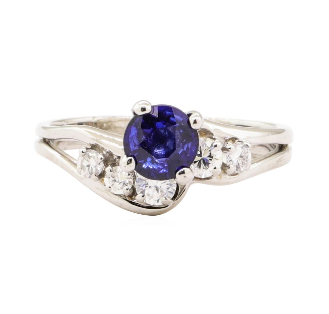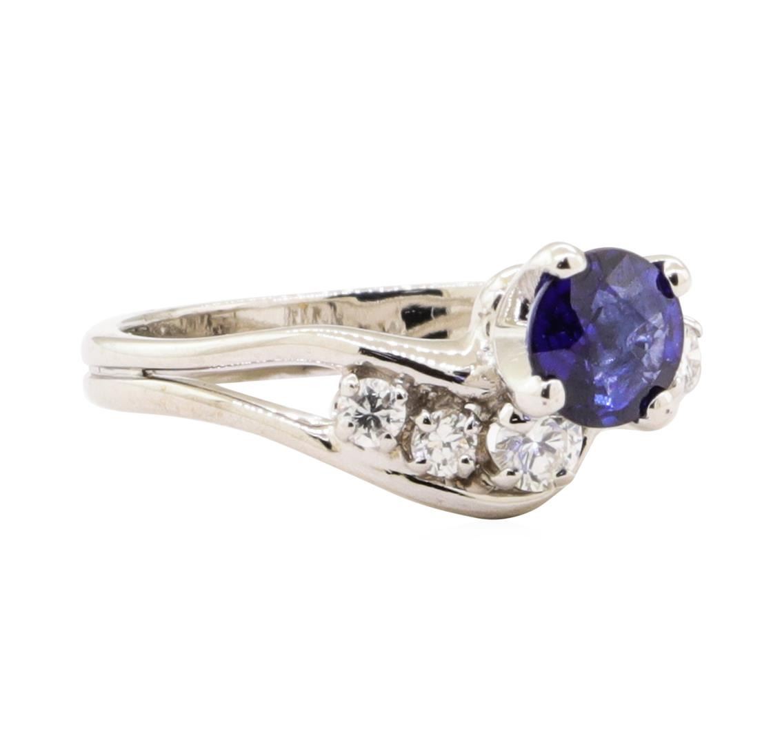 One ring featuring: 14KT white gold weighing 2.8 grams containing one blue sapphire weighing 0.64ctw and diamonds weighing 0.28ctw.