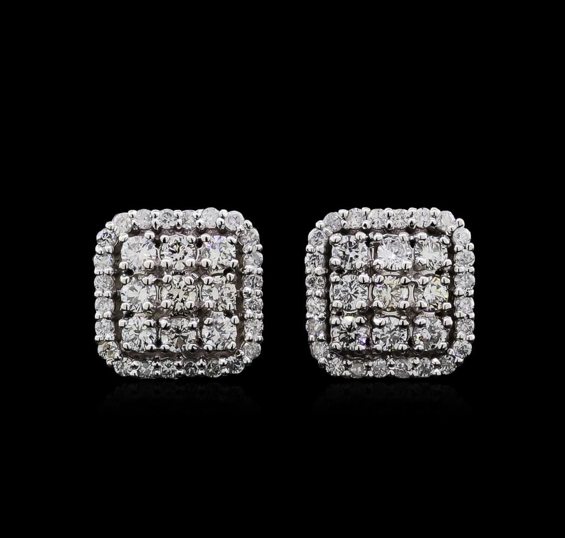 One pair of earrings featuring: 14KT white gold weighing 3.50 grams containing diamonds with a total weight of 0.92ct.