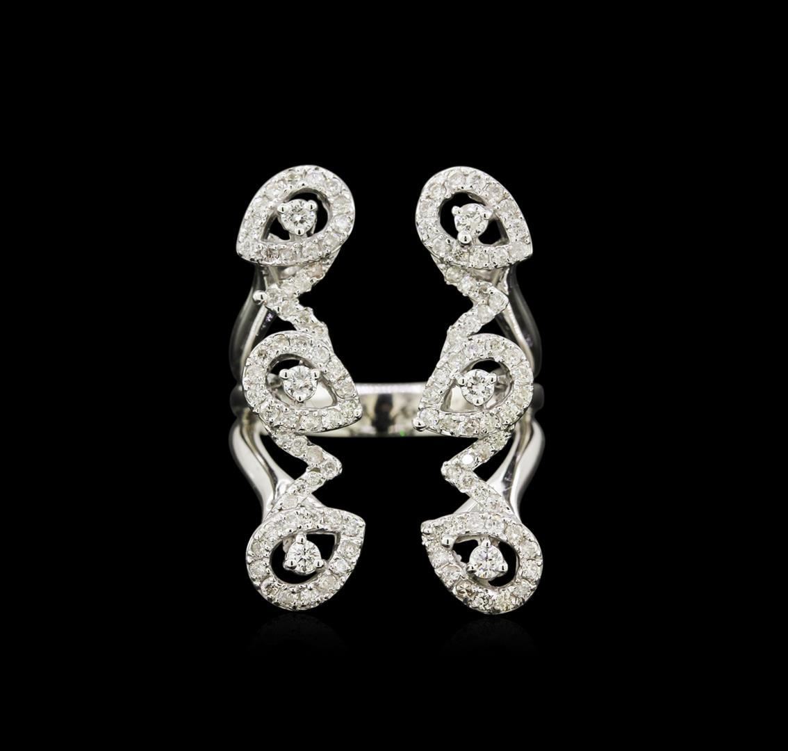One electronically tested 14KT white gold lady's cast fashion ring with a split shank with a bright polish finish. The featured lady's ring is a not connected at the top of the ring, and a shank measuring 3.36 millimeters wide. Identified with markings of "K14". Condition is new, good workmanship. Containing: Six prong set round brilliant cut diamonds, measuring 2.10 - 2.05 x 1.27mm (depth est.) approximate total weight of 6 Stones = 0.20 ct. Graded in the setting. Clarity: SI-2 to I-1. Color: H - I. Cut Good One Hundred Six prong set round brilliant cut diamonds, measuring 1.25 - 1.20 x 0.74mm (depth est.) approximate total weight of 106 Stones = 0.72ct. Graded in the setting. Clarity: SI-2 to I-2. Color: H - I. Cut Good. Total Weight of Diamonds 0.92ct. Total Weight of Ring 8.20gm. GAS Appraised.