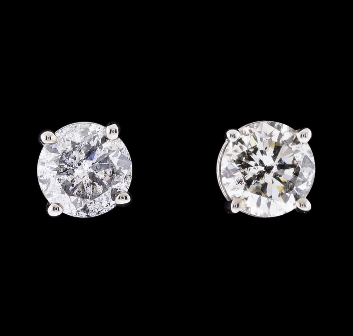 One pair of earrings featuring: 14KT white gold weighing 0.70 grams containing two diamonds weighing 0.93ctw.