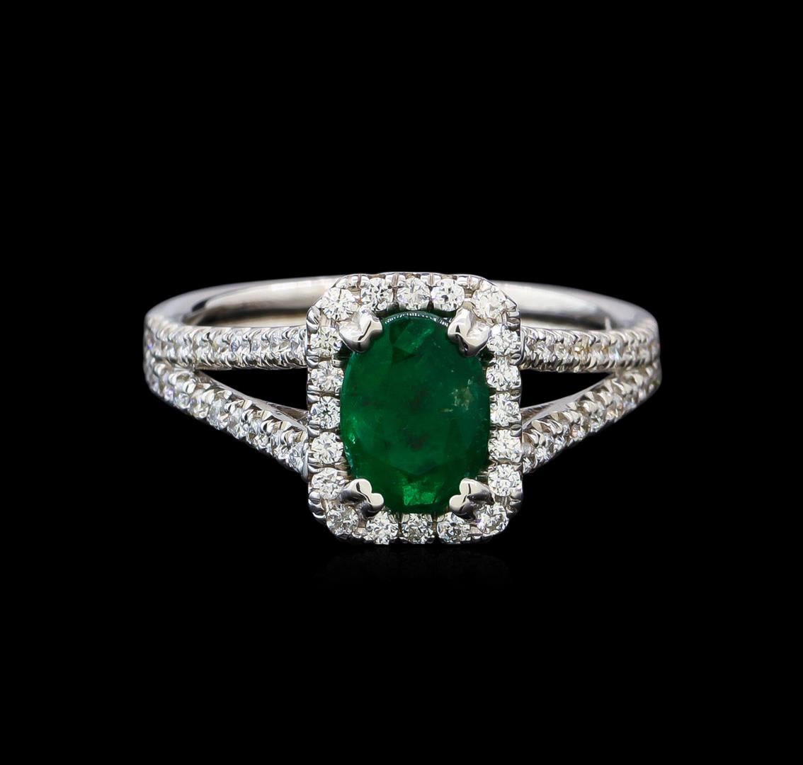 One ring featuring: 14KT white gold weighing 4.35 grams containing one emerald weighing 0.93 carats and diamonds weighing 0.50ctw.