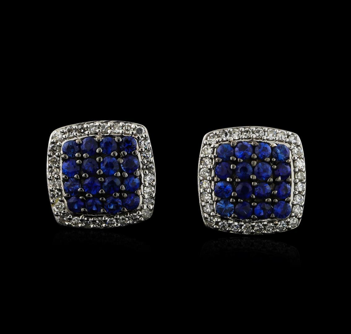 One pair of earrings featuring: 14KT white gold weighing 3.50 grams containing blue sapphires with a total weight of 0.93ct and diamonds with a total weight of 0.27ct.