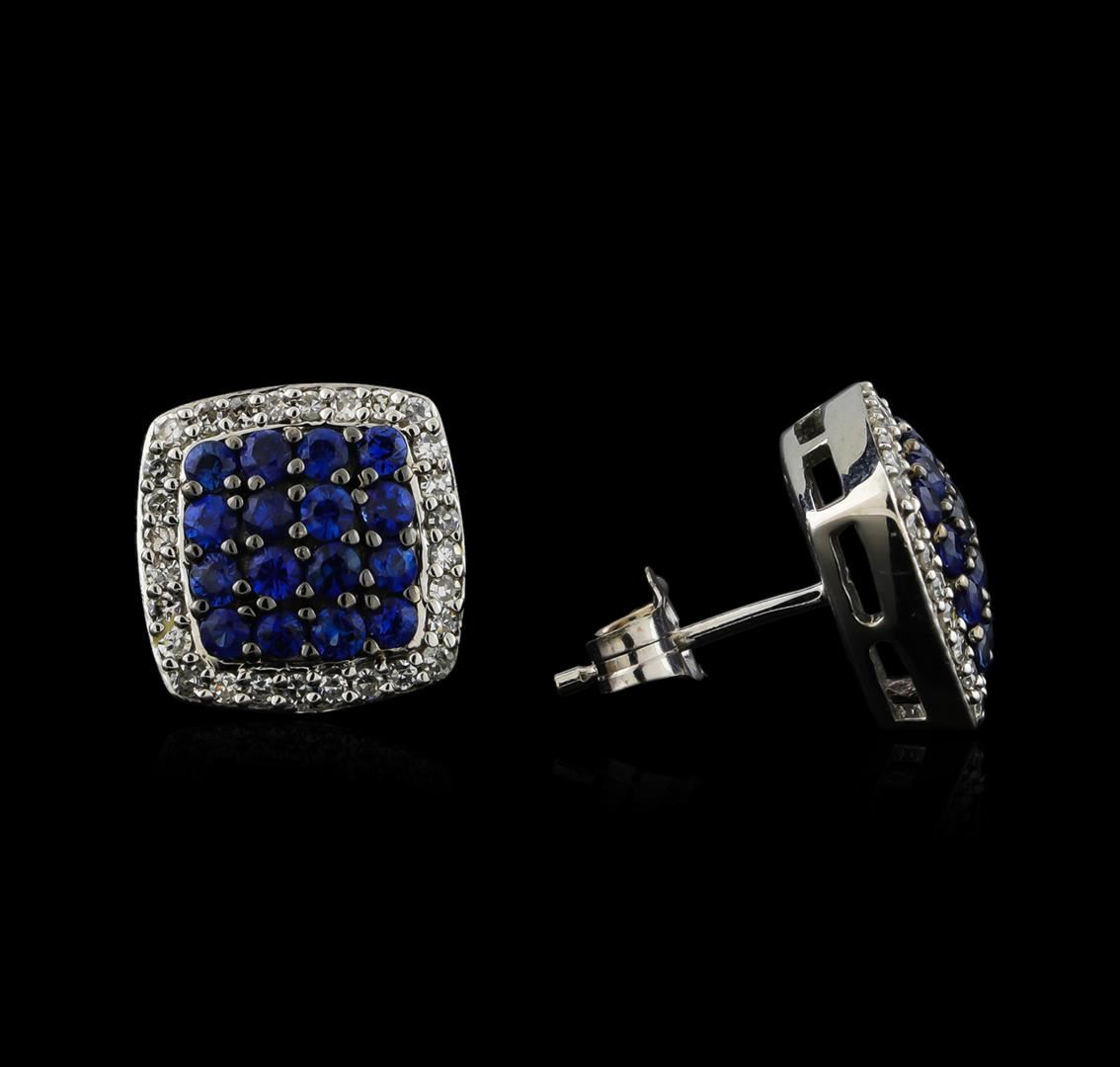 One pair of earrings featuring: 14KT white gold weighing 3.50 grams containing blue sapphires with a total weight of 0.93ct and diamonds with a total weight of 0.27ct.