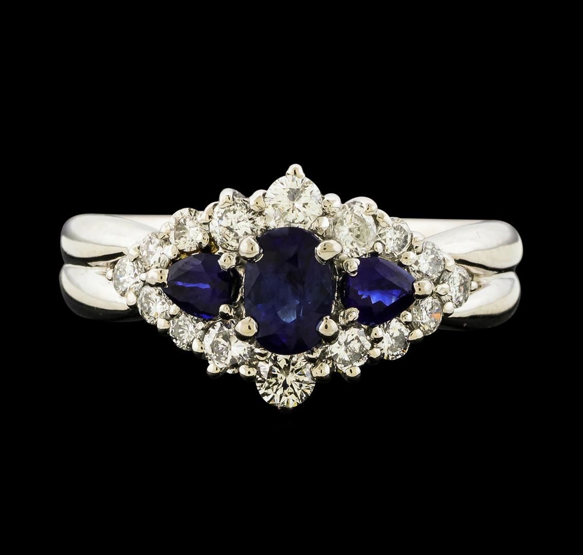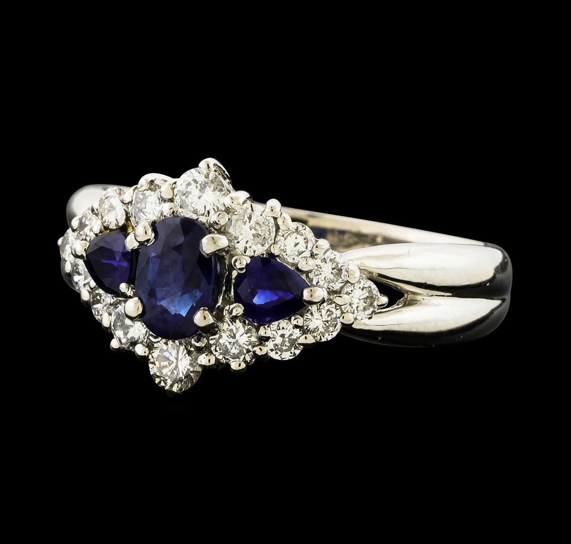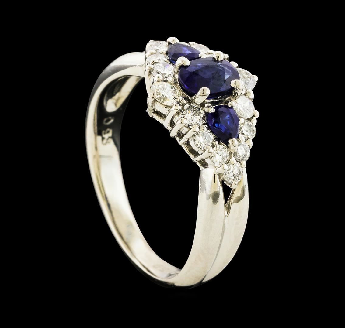 One ring featuring: Platinum containing Sapphire with a total weight of 0.93ct and Diamonds with a total weight of 0.59ct. Total Weight of Ring: 6.2 grams.