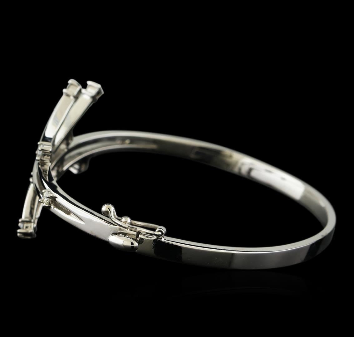 One electronically tested 14KT white gold lady's combination cast & assembled fashion bangle bracelet with a tongue clasp with foldover safety with a bright polish finish. The featured lady's bracelet measures approximately 7 inches in circumference. Identified with markings of "14K". Condition is new, good workmanship. Containing: Twelve prong set round brilliant cut diamonds, measuring 2.80 - 2.70 x 1.71mm (depth est.) approximate total weight of 12 Stones = 0.95ct. Graded in the setting. Clarity: SI-1 to SI-2. Color: H - I. Cut Very Good. Total Weight of Diamonds 0.95ct. Total Weight of Bangle Bracelet 17.50gm. GAS Appraised at $5,220.00.