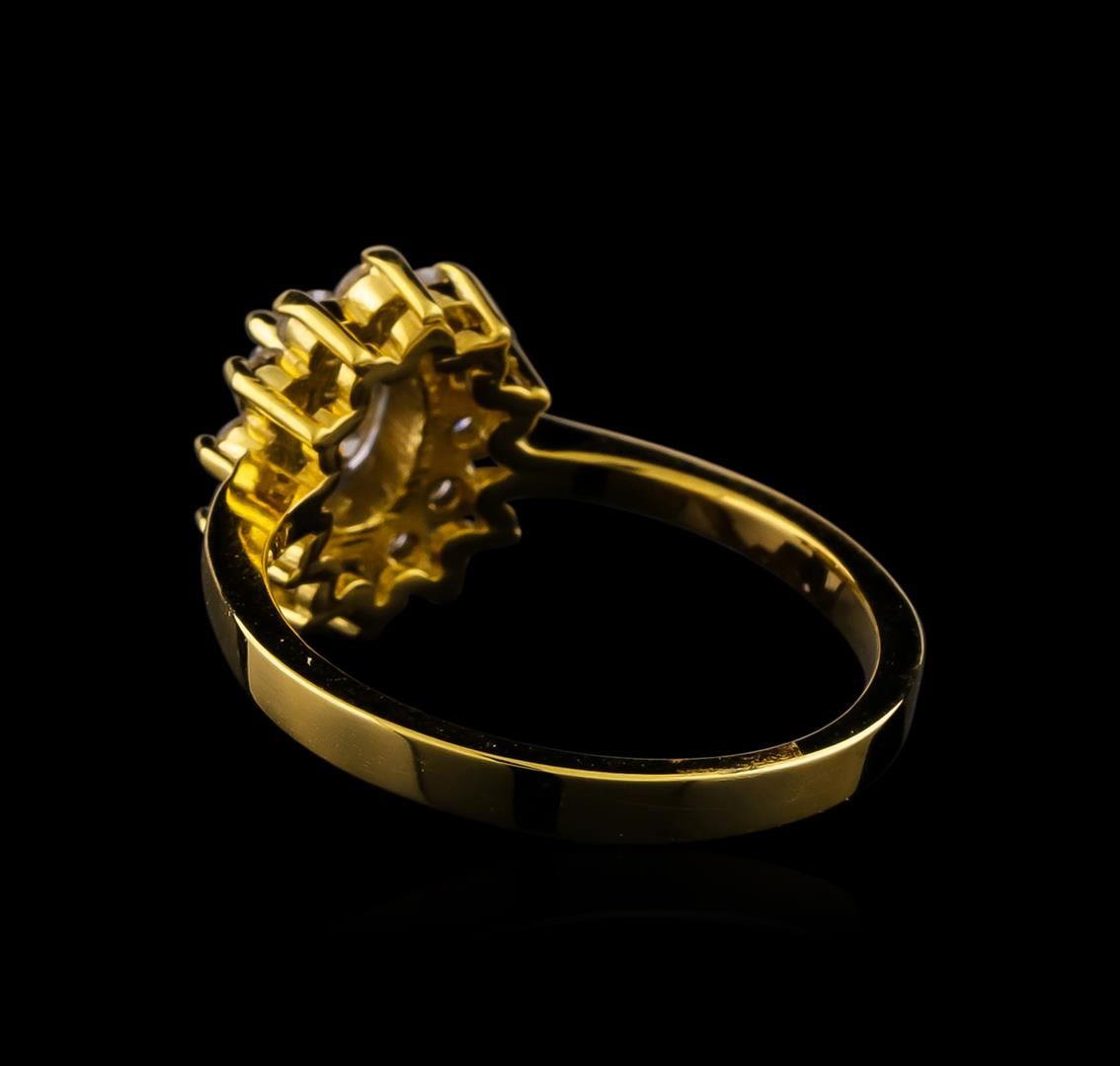 One ring : 14KT yellow gold weighing 3.39gm containing one diamond center stone with a total weight of 0.55ct. and side diamonds weighing 0.40ctw.