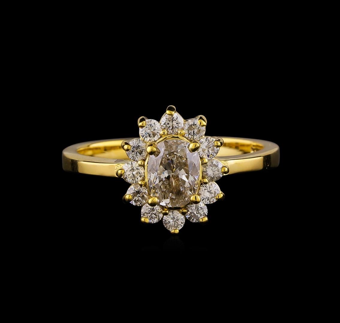 One ring : 14KT yellow gold weighing 3.39gm containing one diamond center stone with a total weight of 0.55ct. and side diamonds weighing 0.40ctw.