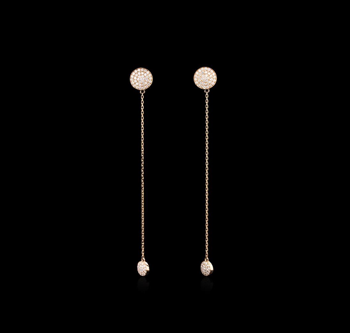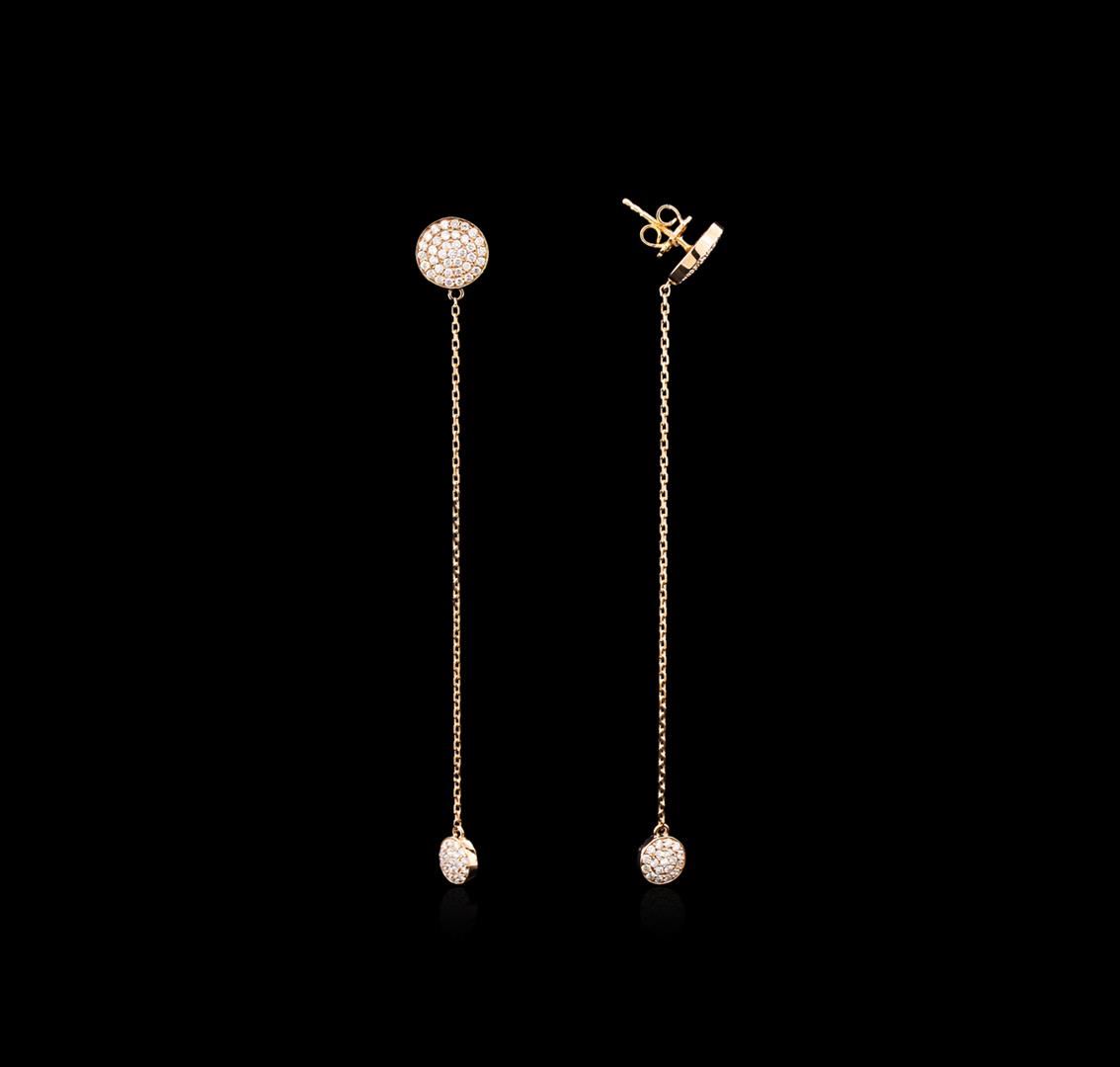 One pair of earrings featuring: 14KT rose gold weighing 5.04 grams containing 112 diamonds with a total weight of 0.95ct.