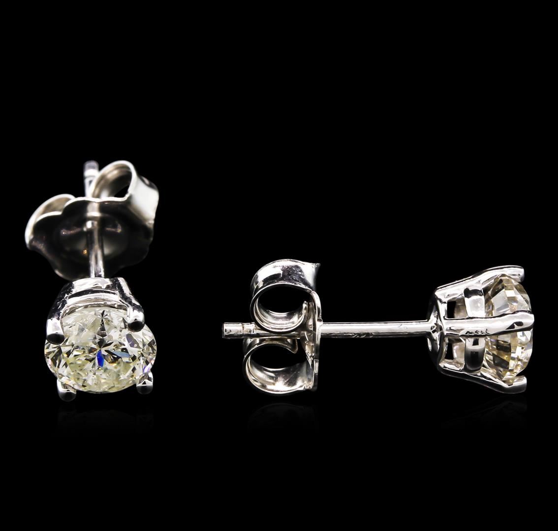 One pair of stud earrings featuring: 14KT white gold weighing 1.15 grams containing diamonds with a total weight of 0.96ct.