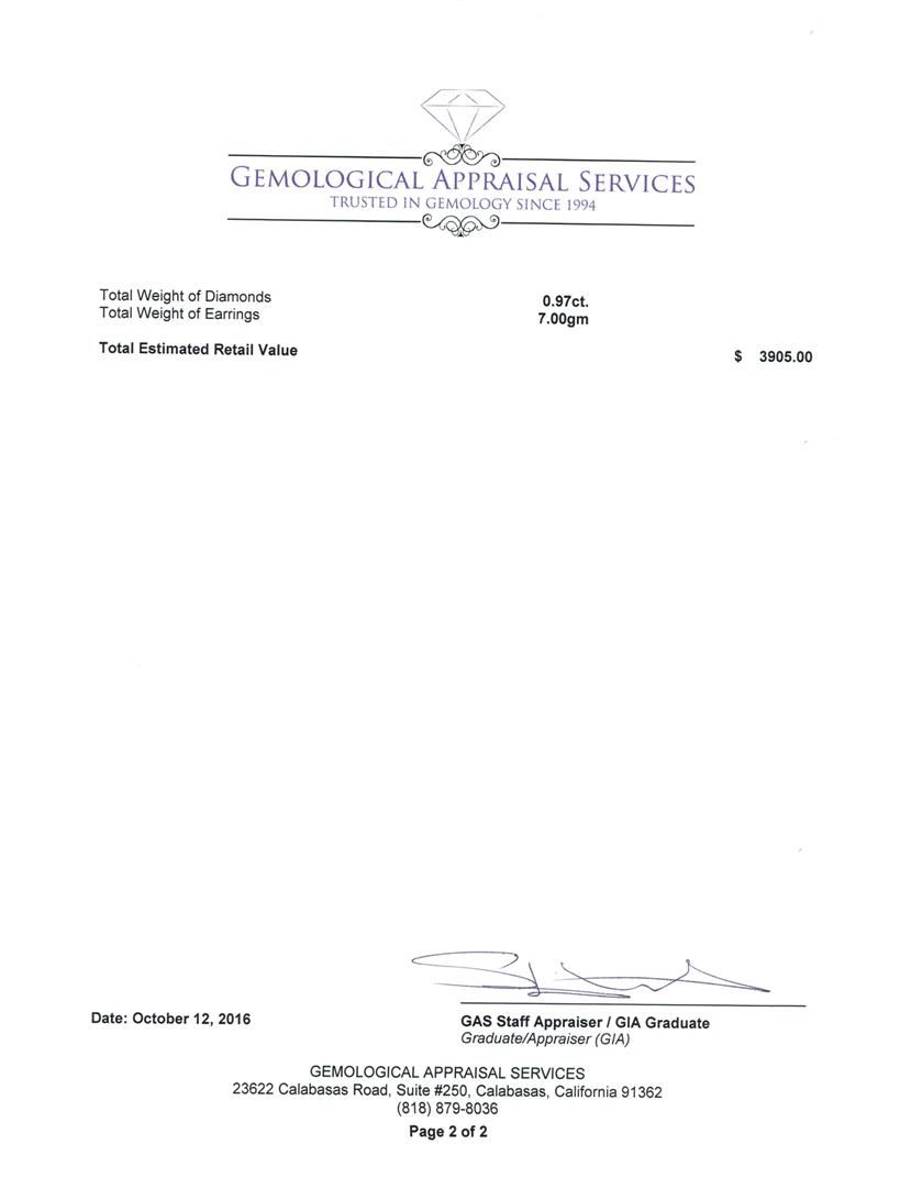 Not all Jewelry, watches or loose stones are appraised and the appraisals are provided for bidders only in certain instances at the discretion of SAA. Our appraisals are conducted by independent third-party appraisal firms. Such firms may be certified GIA Gemologists or have education in the industry or alternative certifications. Appraisals should be used for verification of gemstone and/or metal weight, size, and grade only, not actual value for resale or insurance purposes. Appraisal value should be not considered for actual value, as price varies greatly from retail locations and other merchants in different geographic locations. All Items auctioned by SAA should not be purchased with a view or expectation toward resale for appraisal price given, or to make a profit. The ultimate value for which an item can be resold may vary drastically from the appraisals listed by SAA.