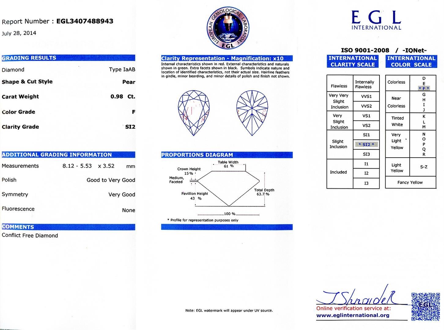 0.98ct Diamond Solitaire Pendant 14K White Gold Chain EGL CERTIFIED. Please see Photos and Description for all available information. This classic diamond pendant gives you the most classic and timeless look in an elegant 14K white gold chain. The diamond is set in a prong setting and is accompanied by EGL certification for the utmost quality and value for you. It's a timeless piece that you can wear day in and day out.