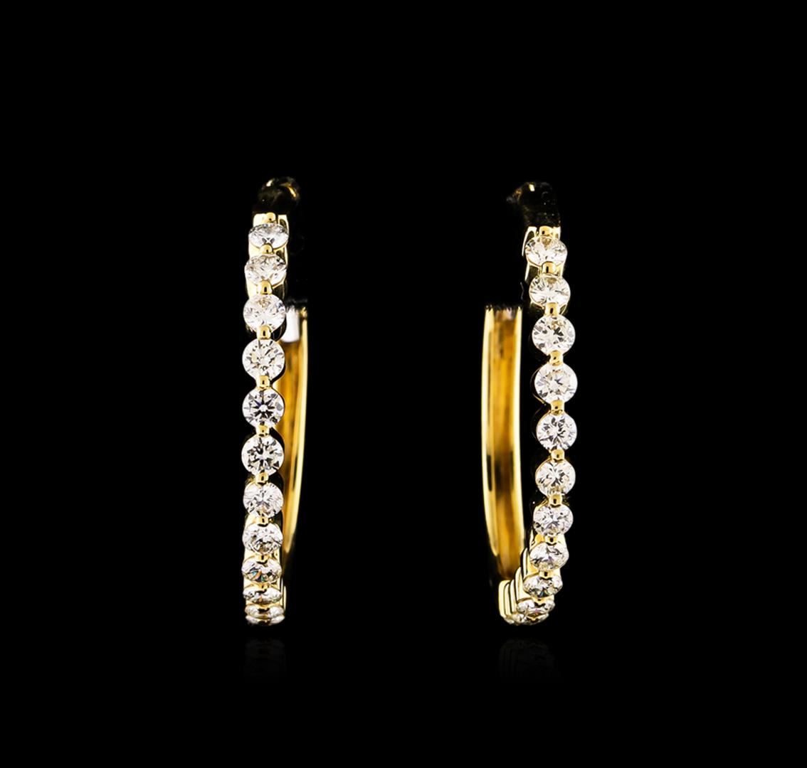 One pair of earrings featuring: 14KT yellow gold weighing 4.70 grams containing diamonds with an approximate total weight of 0.98ct.
