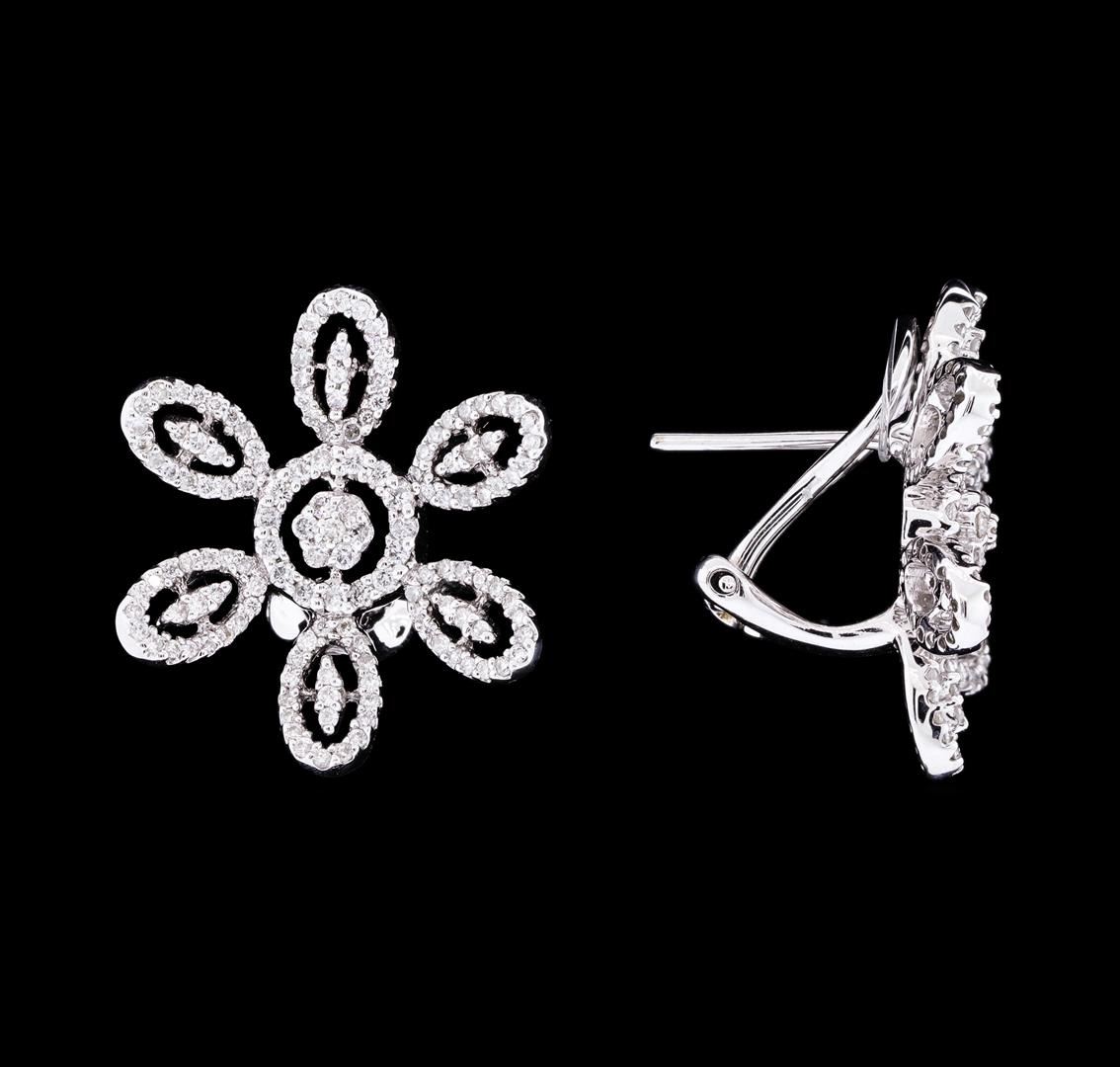 One pair of earrings featuring: 18KT white gold containing diamonds weighing 0.99ctw with a total item weight of 8.0 grams.