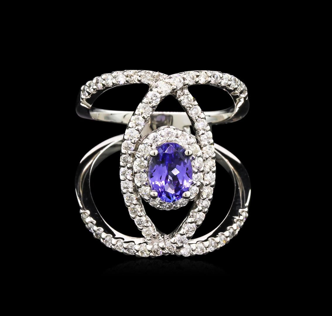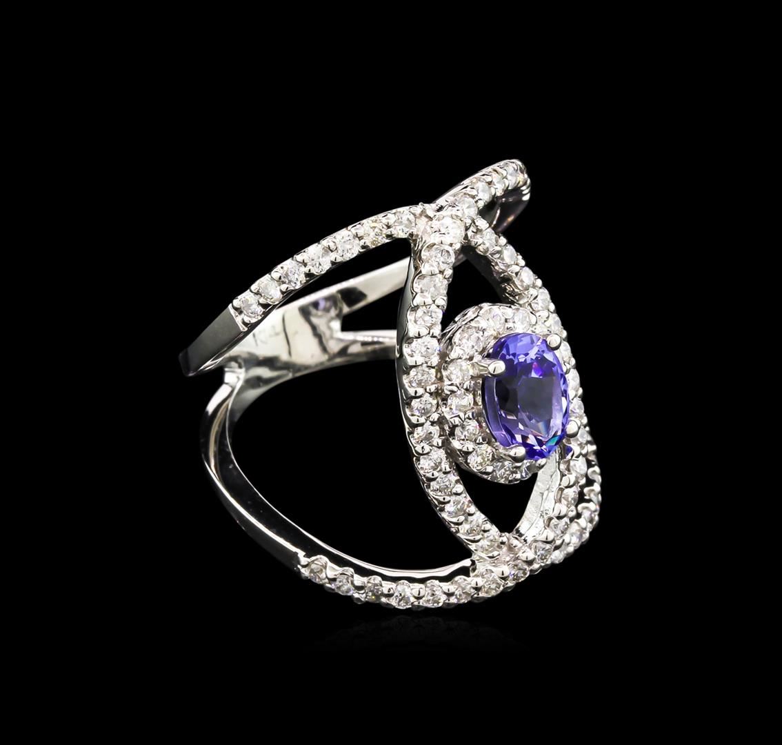 One ring featuring: 14KT gold weighing 6.25 grams containing one tanzanite with a total weight of 0.99ct and 70 diamonds with a total weight of 0.85ct.