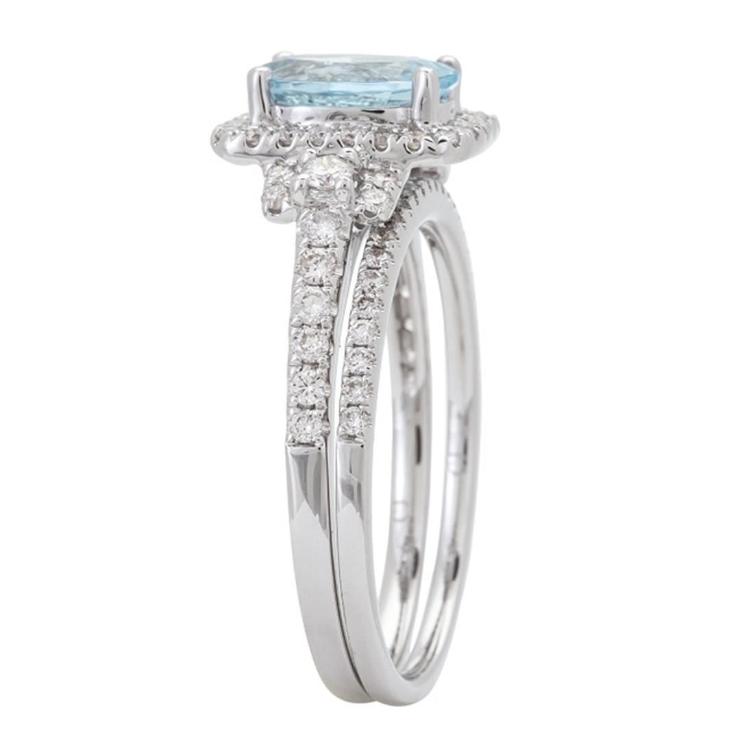 One Aquamarine and Diamond Ring featuring: 14KT White Gold with a total weight of 3.68 grams, Aquamarine with a total weight of 1.00ct, and 71 Round Cut Diamonds with a total weight of 0.52ctw.