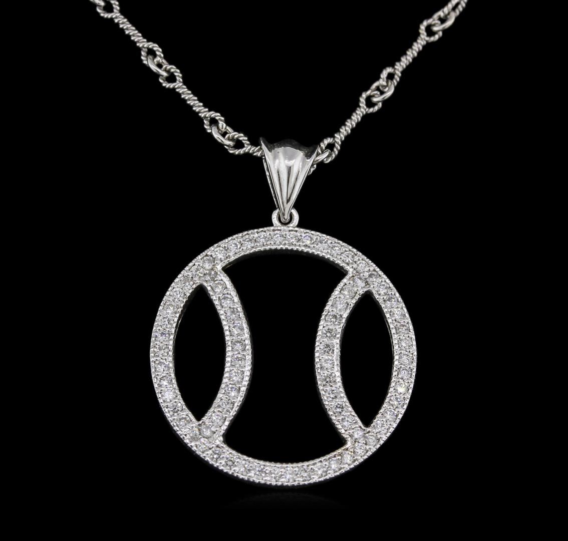 One basketball pendant with chain featuring: 14KT white gold weighing 10.40 grams containing diamonds with a total weight of 1.00ct.