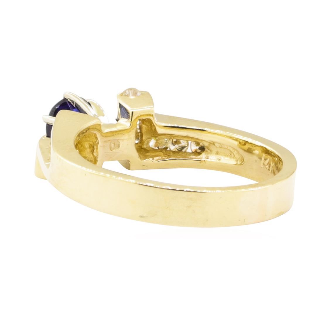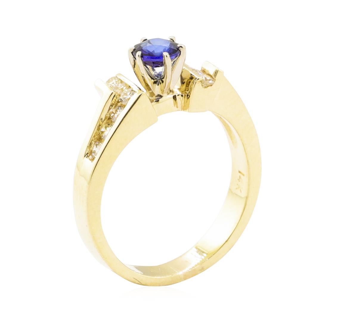 One ring featuring: 14KT yellow gold weighing 5.5 grams containing one sapphire weighing 0.60 ctw and diamonds weighing 0.40 ctw.