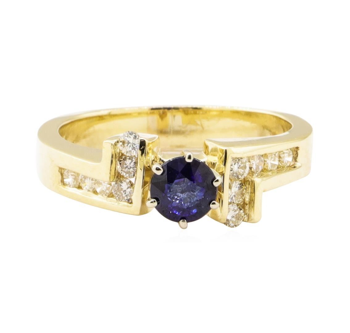 One ring featuring: 14KT yellow gold weighing 5.5 grams containing one sapphire weighing 0.60 ctw and diamonds weighing 0.40 ctw.