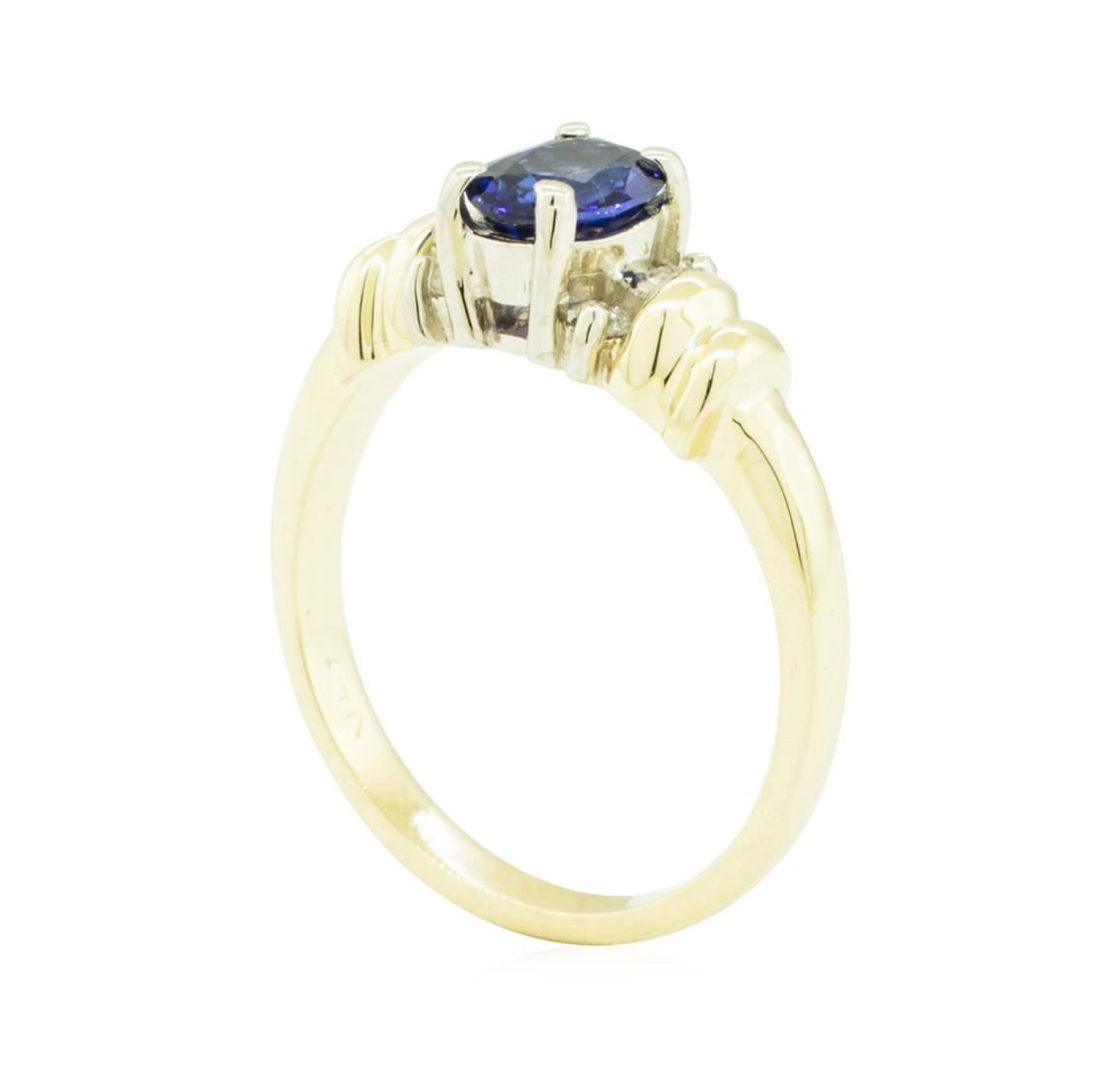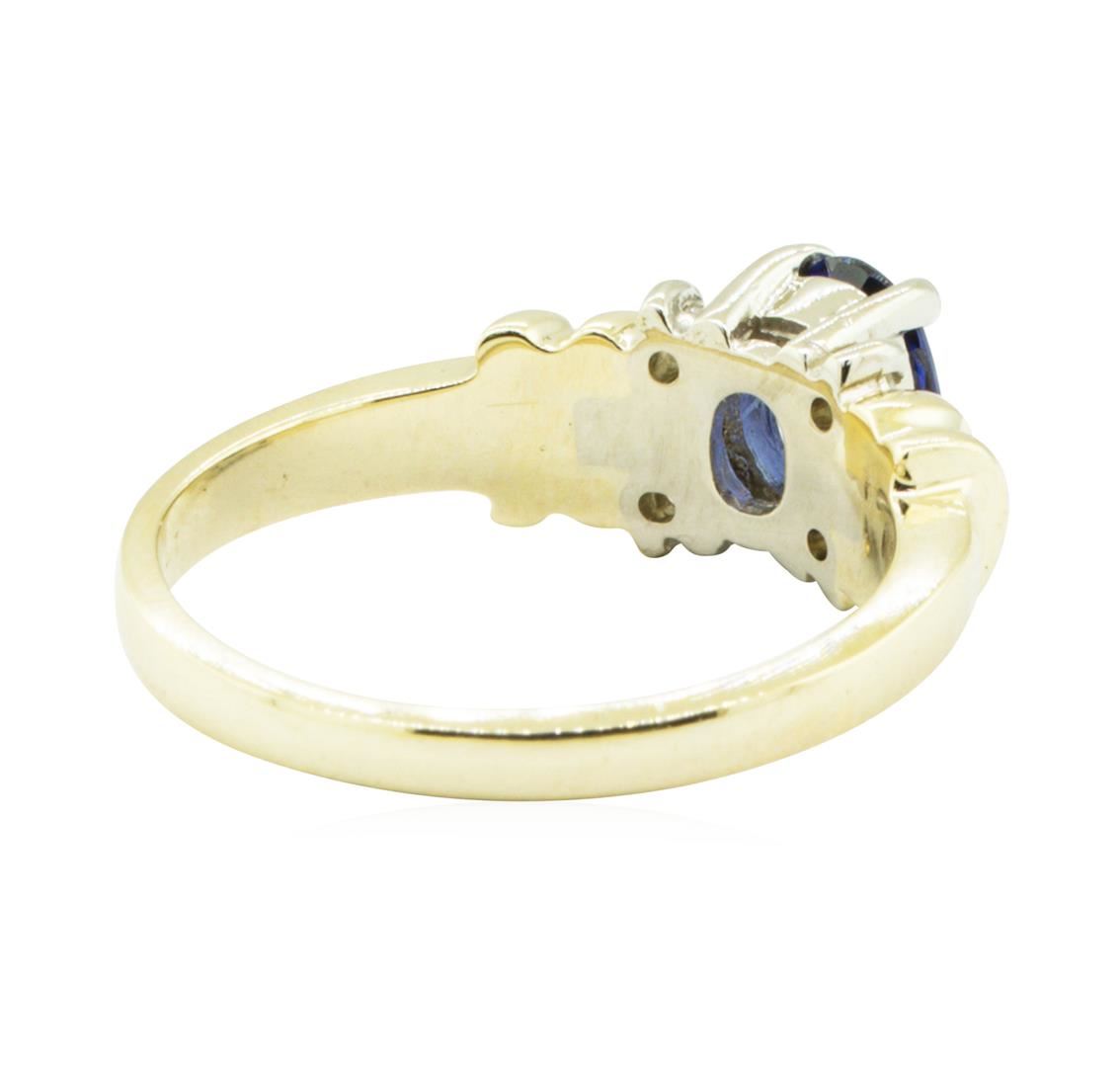 One ring featuring: 14KT yellow and white gold weighing 4.9 grams containing one oval blue sapphire weighing 0.88ct and diamonds weighing 0.12ctw.