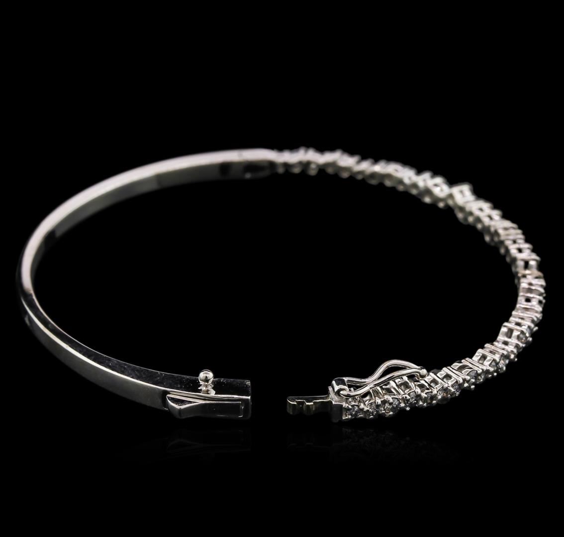 One electronically tested 14KT white gold lady's combination cast & assembled bangle bracelet with a tongue clasp with foldover safety with a straight line with a bright polish finish. Condition is new, good workmanship. Containing: Forty-One prong set round brilliant cut diamonds, measuring 1.90 - 1.80 x 1.17mm (depth est.) approximate total weight of 41 Stones = 1.00ct. Graded in the setting. Clarity: SI-2 to I-1. Color: I - Good. Total Weight of Diamonds 1.00ct. Total Weight of Bracelet 10.40gm. GAS Appraised at $3,970.00.