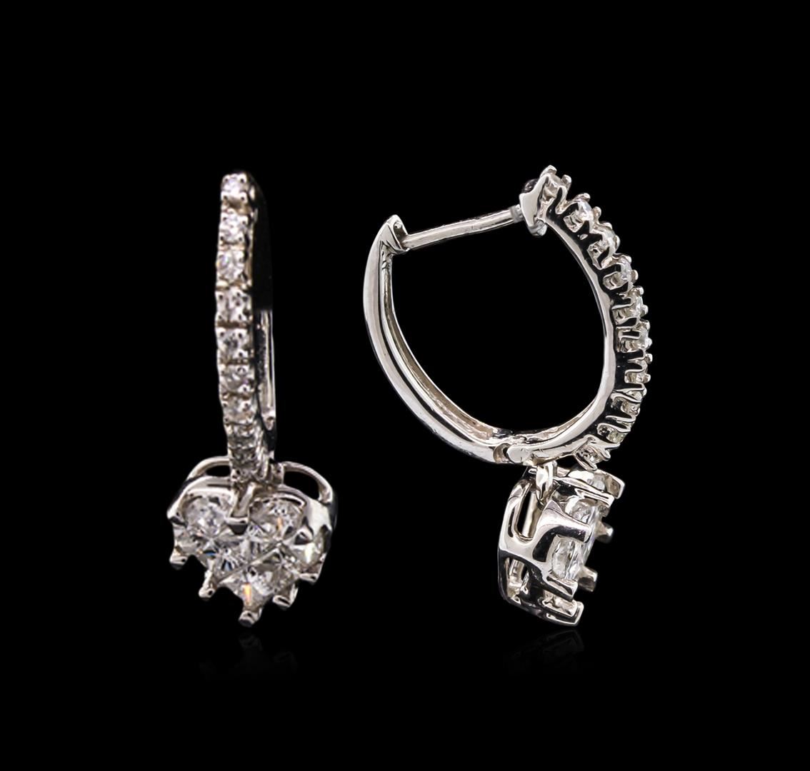 One pair of earrings featuring: 14KT white gold weighing 3.20 grams containing diamonds with a total weight of 1.00ct.