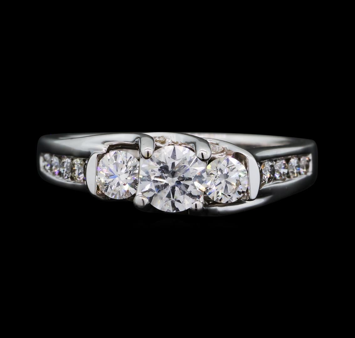 One ring featuring: 14KT white gold weighing 2.6 grams containing one center diamond weighing 0.50ct and surrounding diamonds weighing 0.50ctw.