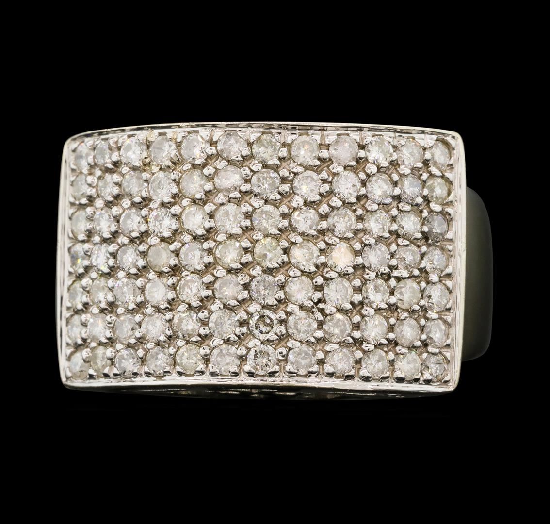 One electronically tested 14KT white gold lady's combination cast & assembled fashion ring with a tapered wide band with a bright polish finish. The featured lady's ring has a scrolled under gallery and a shank measuring 3.45 millimeters wide. Identified GAS Appraised at $3,100.00.