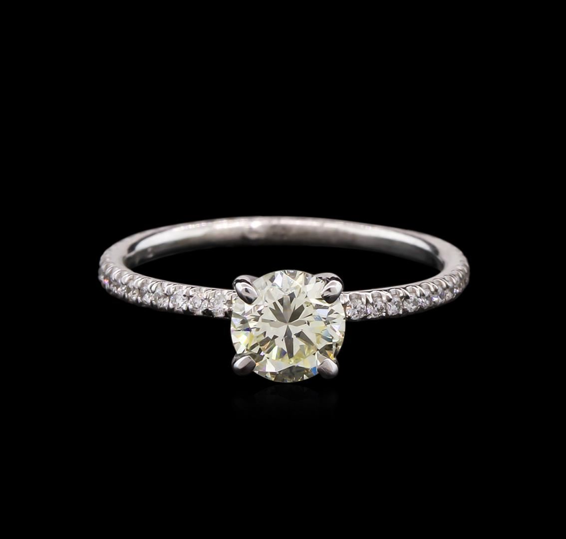 One electronically tested platinum lady's cast wedding ring with a bright polish finish. The featured lady's ring has a shank measuring 1.50 millimeters wide. Identified with markings of "PLAT". Condition is new, good workmanship. Containing: One prong set round brilliant cut diamond, measuring 5.74 - 5.72 x 3.65mm (depth est.) approximate weight of 0.76ct. Graded in the setting. Clarity: SI-1. Color: Good Forty-Eight split prong set round brilliant cut diamonds, measuring 1.10 - 1.05 x 0.70mm (depth est.) approximate total weight of 48 Stones = 0.24ct. Graded in the setting. Clarity: SI-1 to SI-2. Color: H - I. Cut Good. Total Weight of Diamonds 1.00ct. Total Weight of Ring 2.00gm. GAS Appraised at $7,065.00.